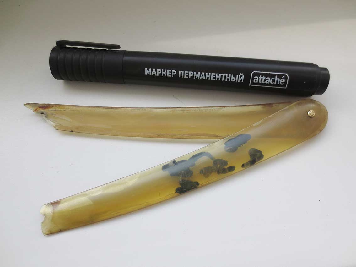 Травление рогаИнтересно, но я бы посмотрел на того, кто этот черепаховый раскрас по этому рецепту сделает и наставил бы тому плюсиков, ну штук 5, не меньше (по пятибальной системе)!