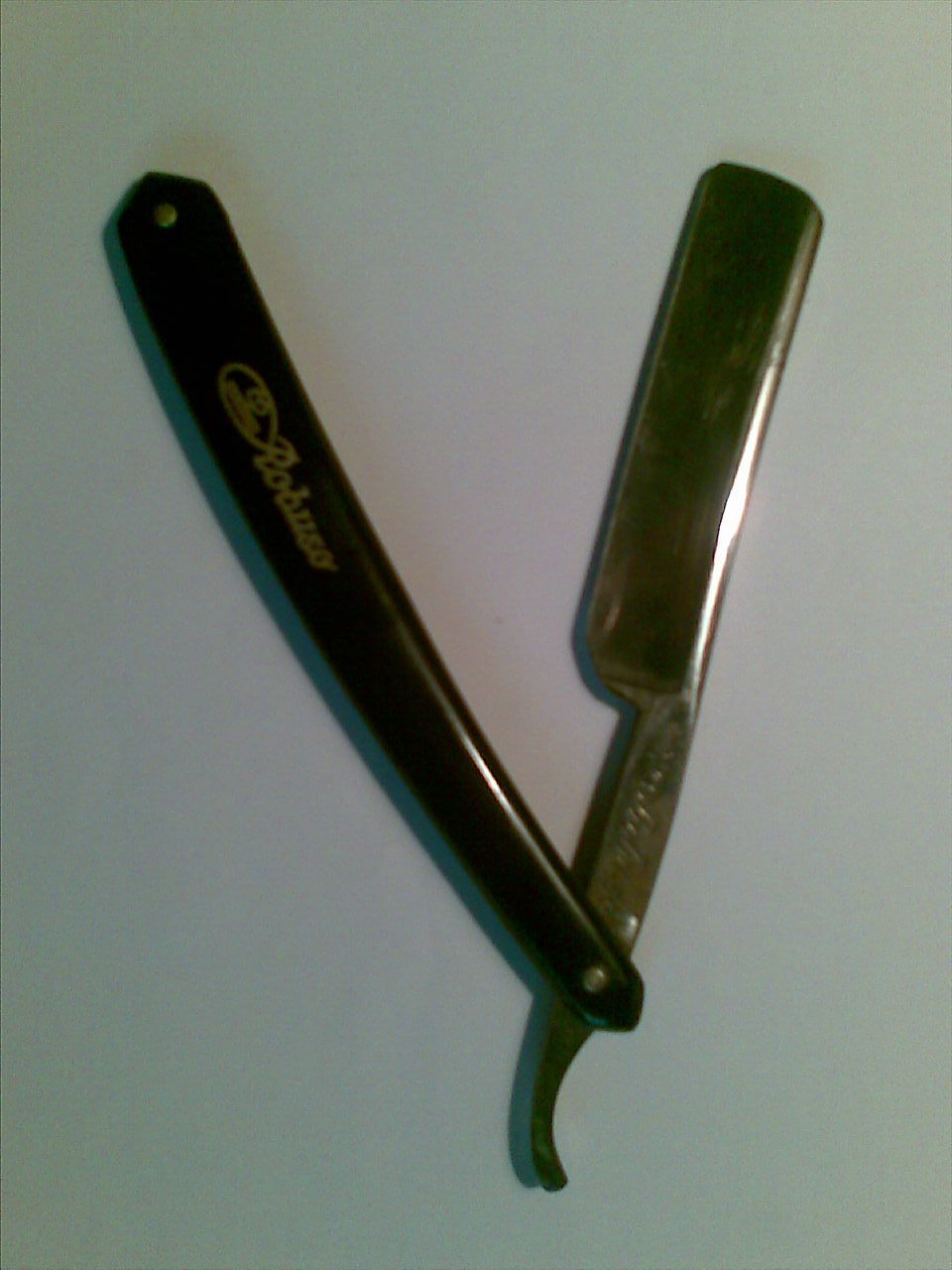 Подскажите, бритва ROBUSO только вот калачей нет. С одной стороны надпись ROBUSO, с другой стороны ROBUSO solingen m.i.germany и в кружочке 520. Только вот сама бритва какая-то маленькая особенно хвостик. И само полотно примерно 2/8 .