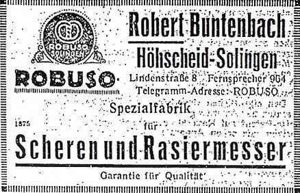 ROBUSO Stahlwarenfabrik, Buntenbach & Sohn GmbH по сведениям каталогов 1923 года принадлежала ТМ Stoppel maher.