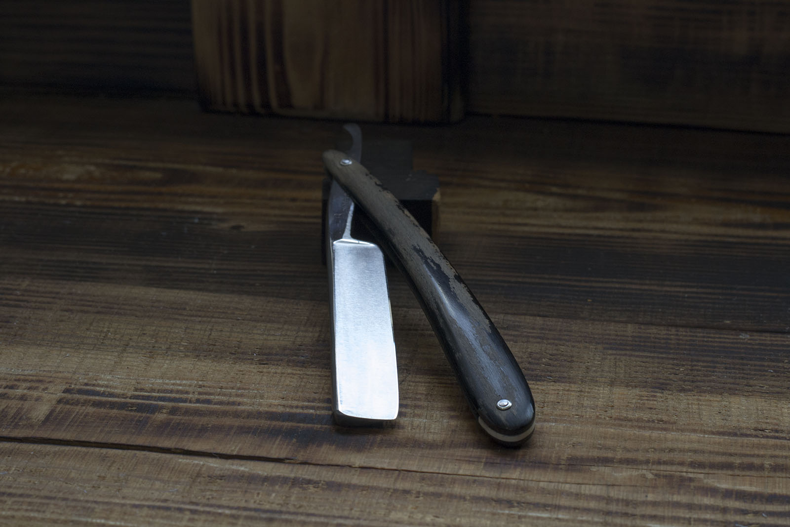 Одна из редких бритв моей коллекции - английский клин от Joseph Wostenholm, торговой марки EBRO. На полотно нанесено травление с символами масонства и поскольку резист перед травлением наносился вручную, каждую такую бритву можно считать отдельным штучным произведением искусства того времени. Бритва произведена середине 19 века, выполнена из качественной углеродистой стали, геометрия полотна на довольно высоком уровне, поэтому было решено оставить бритву в максимально оригинальном состоянии с. Я всего лишь отполировал полотно, немного поработал с травлением и произвел заточку, так же была изготовлена новая рукоять из рога африканского буйвола. Ширина 21 мм., бритва заточена и готова к бритью, отличный коллекционный экземпляр в редкой сохранности. продано EBRO Show