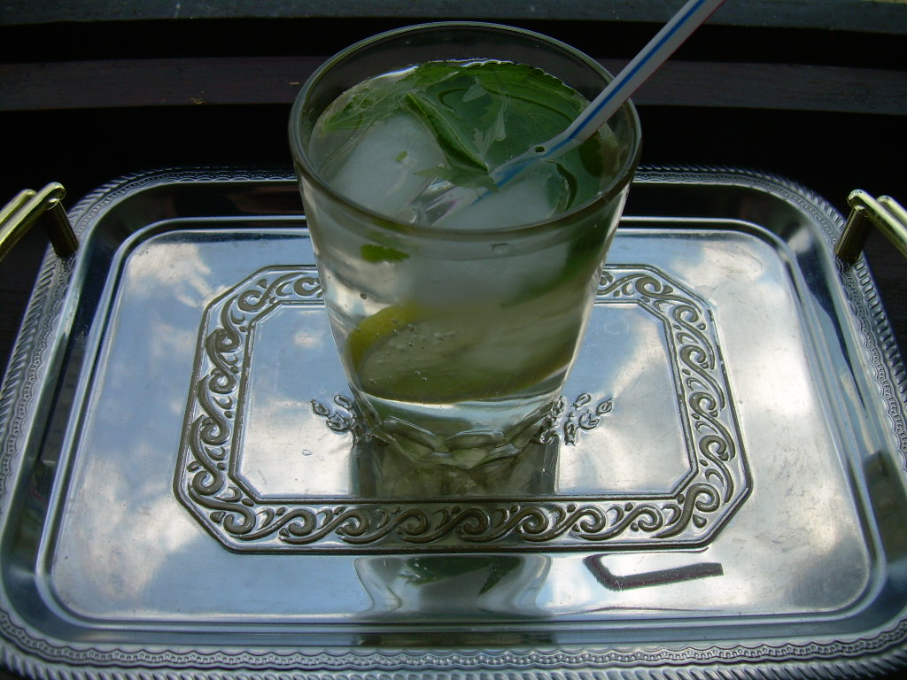 Чай, кофе и другие безалкогольные напиткиСтаканчик домашнего безалкогольного мохито со льдом в жару. Соединение мяты и лимона - очень освежающе