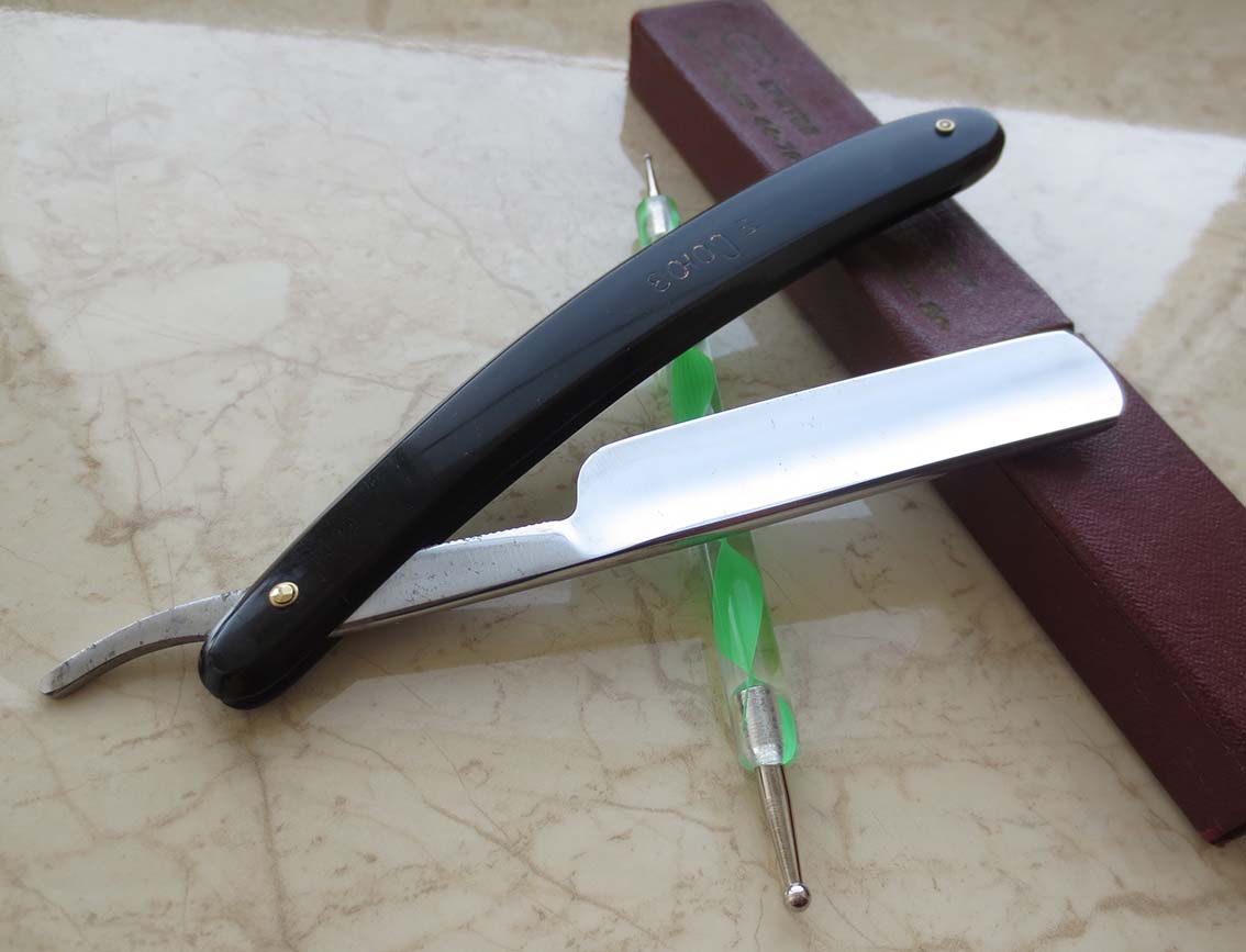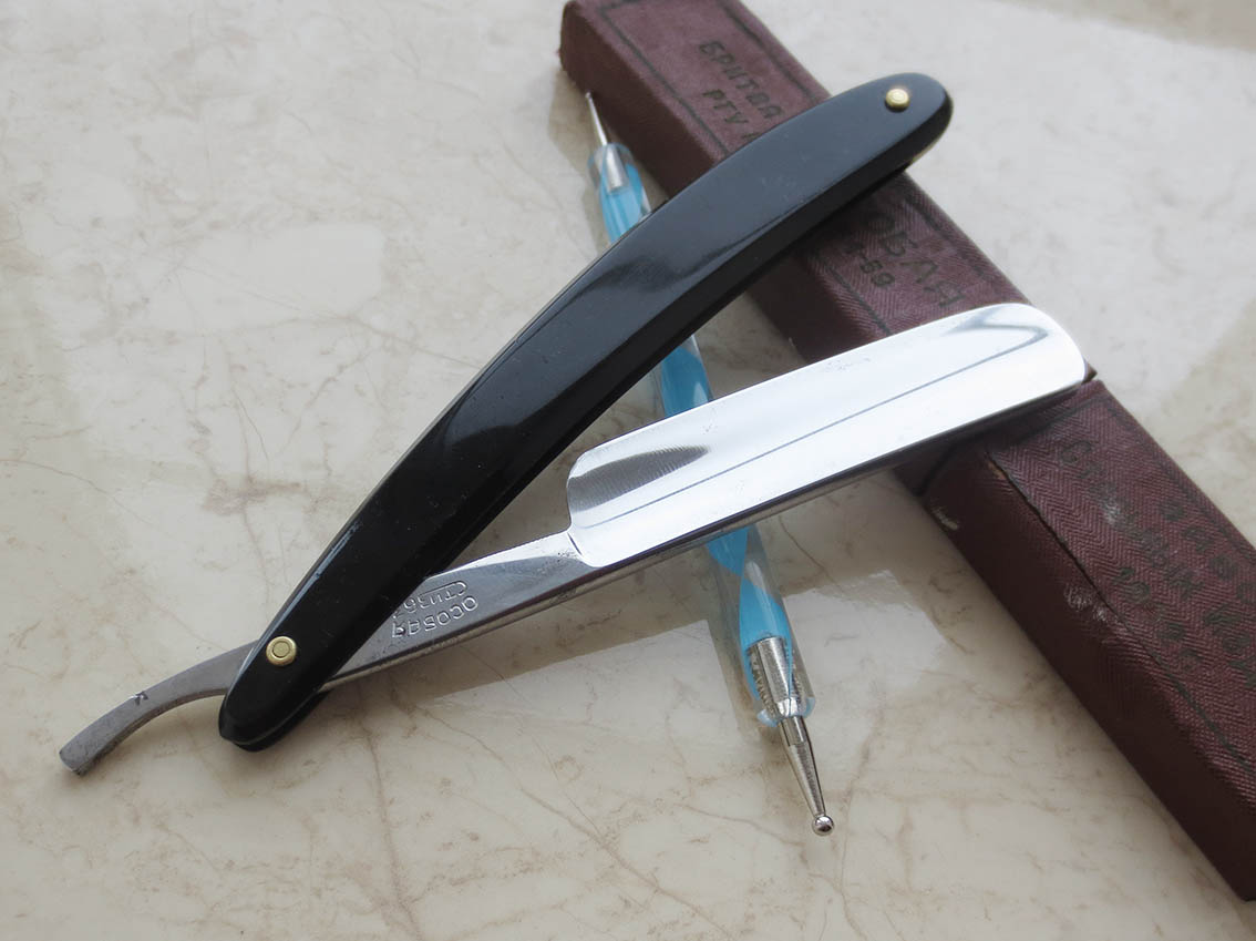 Шеффилда, имя которого на слуху у каждого уважающего себя бритвомана..) Старинная опасная бритва английского производителя Wade & Butcher Sheffield. Ширина клинка почти 7/8 дюйма (22мм), новая пластиковая оправа, заклёпки - нейзильбер, клинышек - олово. Знаменитая режущая кромка тоненькая и равномерная, правиться и точиться в дальнейшем будет без проблем. Бритва в очень приличном состоянии, и не смотря на почтенный возраст, брить будет так же шикарно, как и в свои молодые годы, такой добротный английский клин, который подойдёт, как новичку, так и опытному пользователю. Полностью готова к работе, проведены всё заточные и профилактические работы. Направлена и продезинфицирована, купил, сделал пену и брейся, как правильный мужик. При покупке комплекта с ремнем для правки пересылка по России бесплатно. Начинающим подскажу по использованию и уходу за инструментом. Цена - 8500 рублей. Бесит, когда приходится пользоваться бритвой моложе себя...