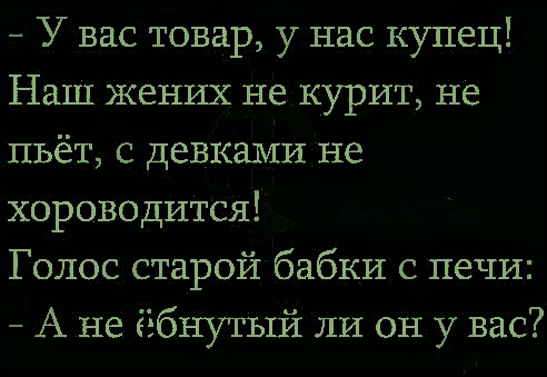 -Капитан, я знаю, что чёрная метка означает смерть, а я сегодня получил голубую, что это означает? -Да тоже ничего хорошего Там зелень ярче изумруда,