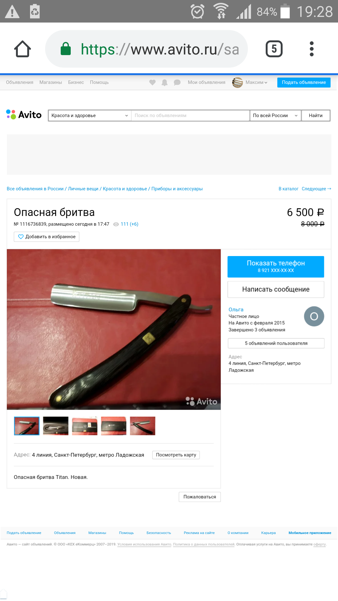 Аукционы: плагиат, развод и "великолепные" описанияОбычная цена на такие вещи на ОЛХ Насчет раритета вопрос сложный. Раритет - значит редкая старинная вещь. В Британии возраст антиквариата определяется не менее 100 лет, в США - не ранее 1830 г. На постсоветских просторах большинство антикварных салонов определяют этот возраст в 50 лет и более. Хоть эта модель самая штатная, но в наше время само изделие - опасная бритва - уже раритет для "пересічного громадянина". Если бы она была в непользованном или хотя бы идеальном состоянии, можно было бы с натяжкой говорить о раритете. А так - просто люди, чуя веяния моды и возрастание спроса на подобные вещи в определенных кругах, пытаются что-то заработать, выдавая желаемое за действительное. Такие дела Волхвы не боятся могучих владык,