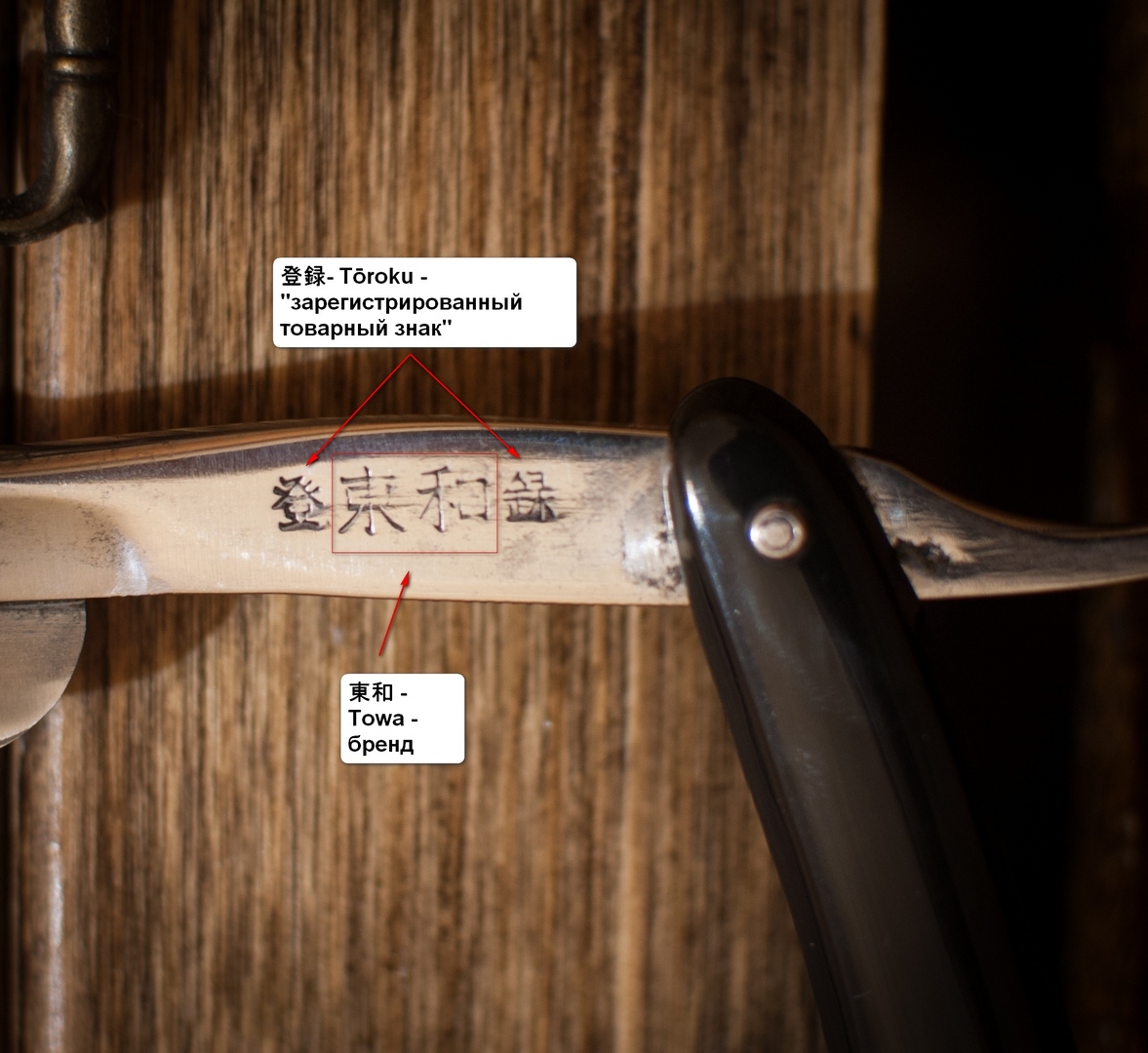 Последнее фото нашел в интернете, вроде такие же символы как и у моей. 東和 特許 (read R>L) Tōwa Tokkyo = Tōwa Patent Ссылка на источник: https://historyrazors.wordpress.com/201 ... a-towa-co/