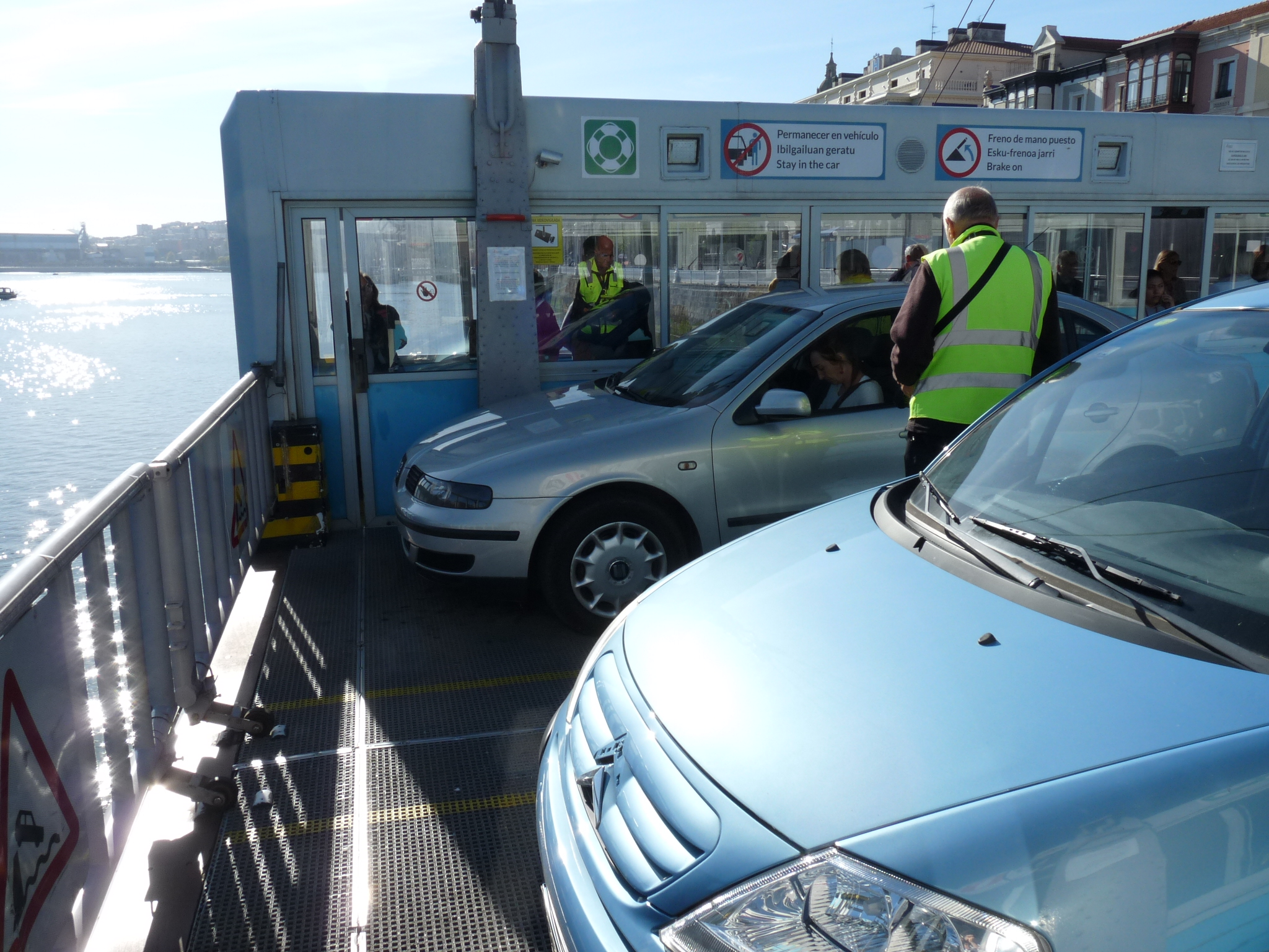 "Бискайский мост" - Puente Viskaja (Bizkaja). Это творение ученика Эйфеля, и остался такой последний действующий паромный вантовый "мост" в мире (хотя это всё-таки паром, мне кажется, а не мост). Построили в начале XX в, работает с перерывом на 1937...1942г. (когда его взорвали отсупающие баски и восстановленный Франко в 1942г.). С того времени работает круглосуточно и, якобы, без кап. ремонтов. Перевозит за пару минут. Своеобразное ощущение.