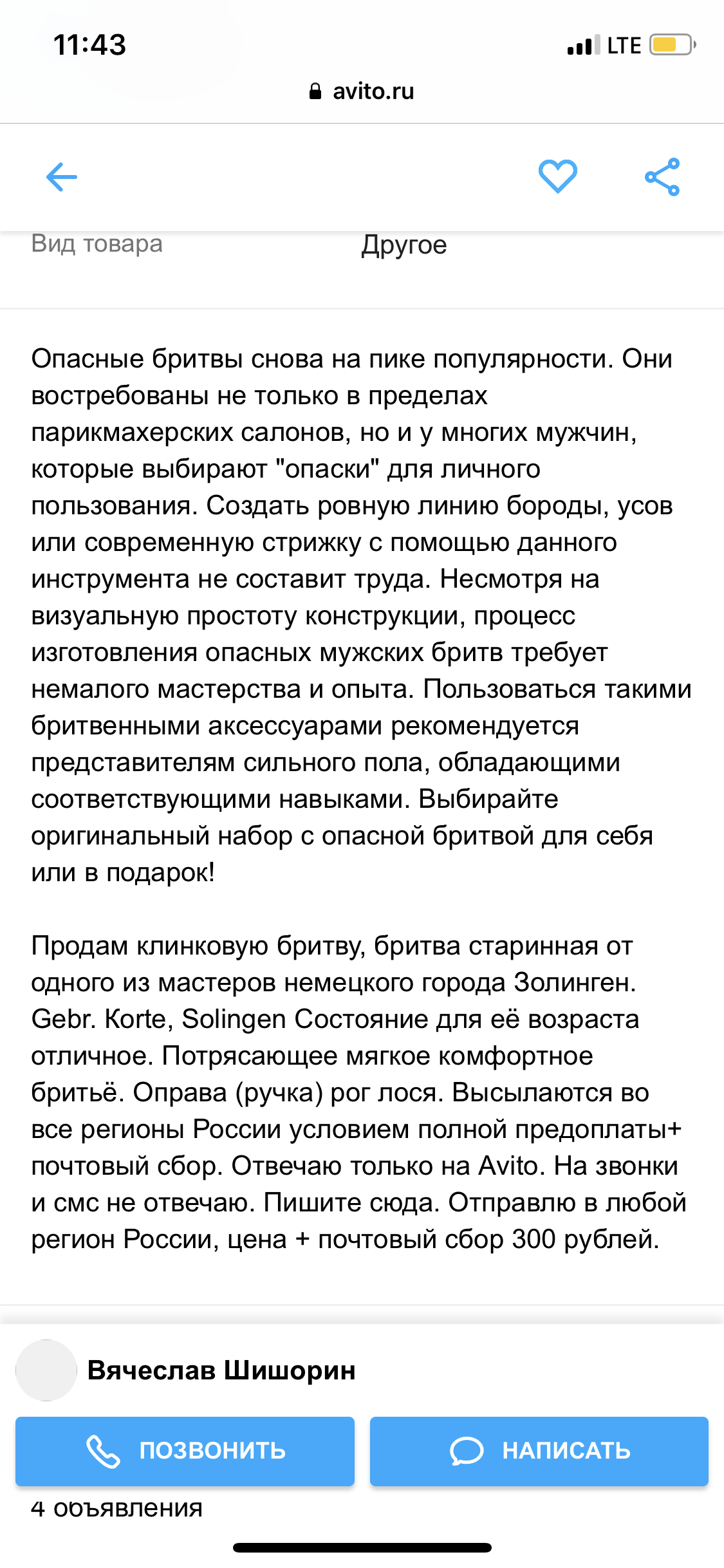 Однако, хитрый барыга. Разместил вторым лотом, чтобы на торгах сорвать побольше. Опомнитесь! Видно ведь, что бритва коцаная.
