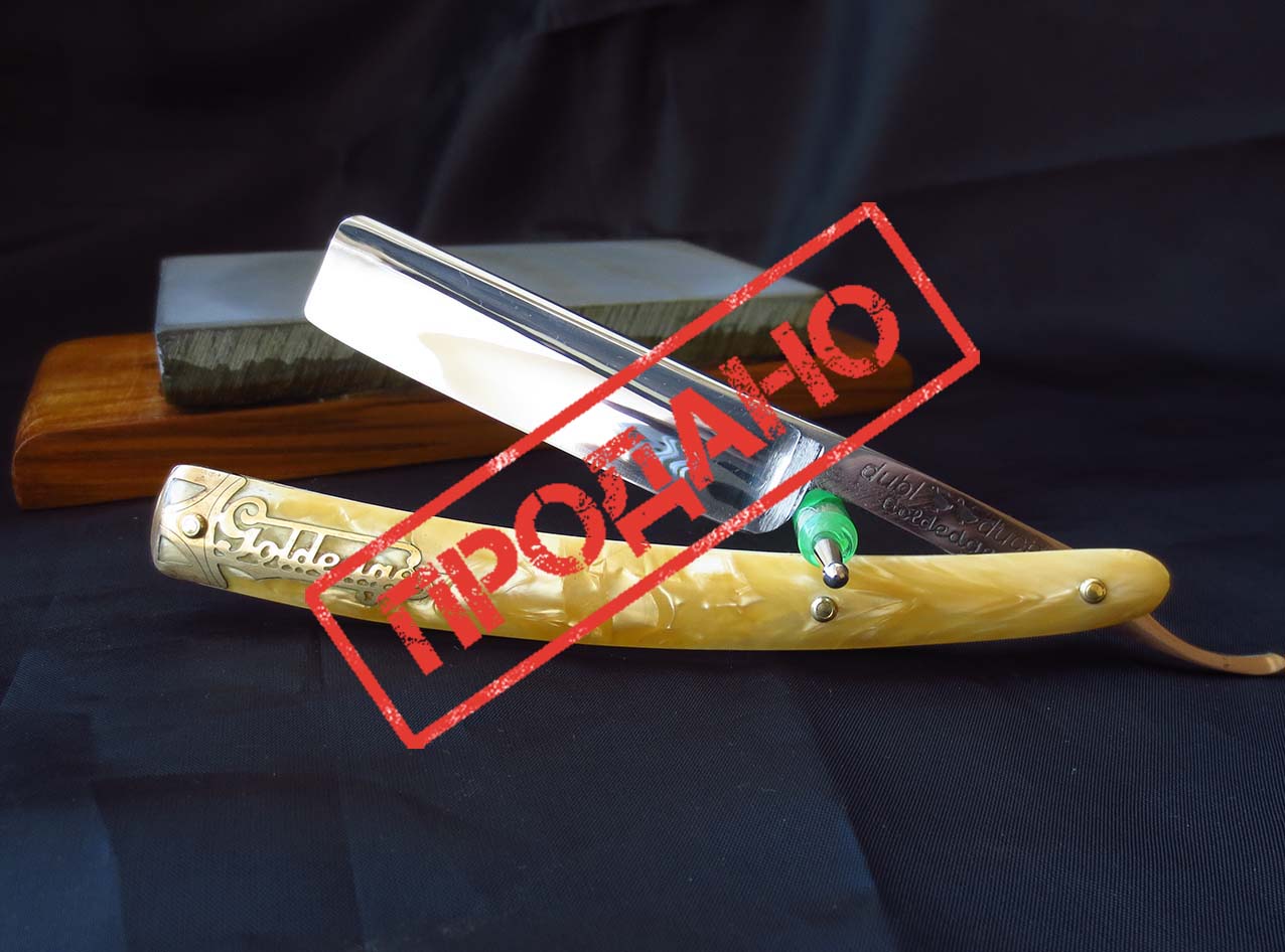 Опасная бритва "Dubl Duck" Goldedge Solingen-Germany. Углеродистая сталь, полная вогнутость, ширина полотна - 5/8 дюйма, пластиковая оправа под перламутр, всё родное, заводское. Бритва заточена на японских камнях и протестирована на себе лично. Бреет мягко и нежно, как уточка щиплет молодую травку на лужайке..)) После всех работ и тестов инструмент продезинфицирован, направлен и находится в полной готовности для борьбы с вашей щетиной. Также всегда есть в наличии ремни для правки опасных бритв из натуральной кожи, при покупке ремня и бритвы скидка на доставку. Начинающим подскажу и покажу, как пользоваться и ухаживать за утятами...) Цена - 7550 рублей. Бесит, когда приходится пользоваться бритвой моложе себя...