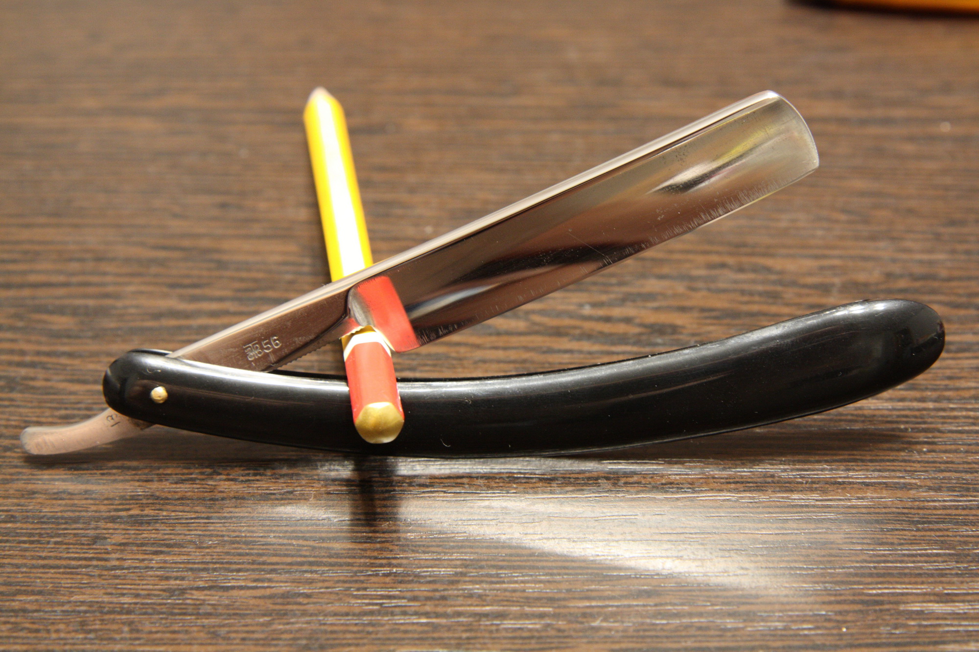- бритва без клейм советского производства (50е годы), ручка текстолит