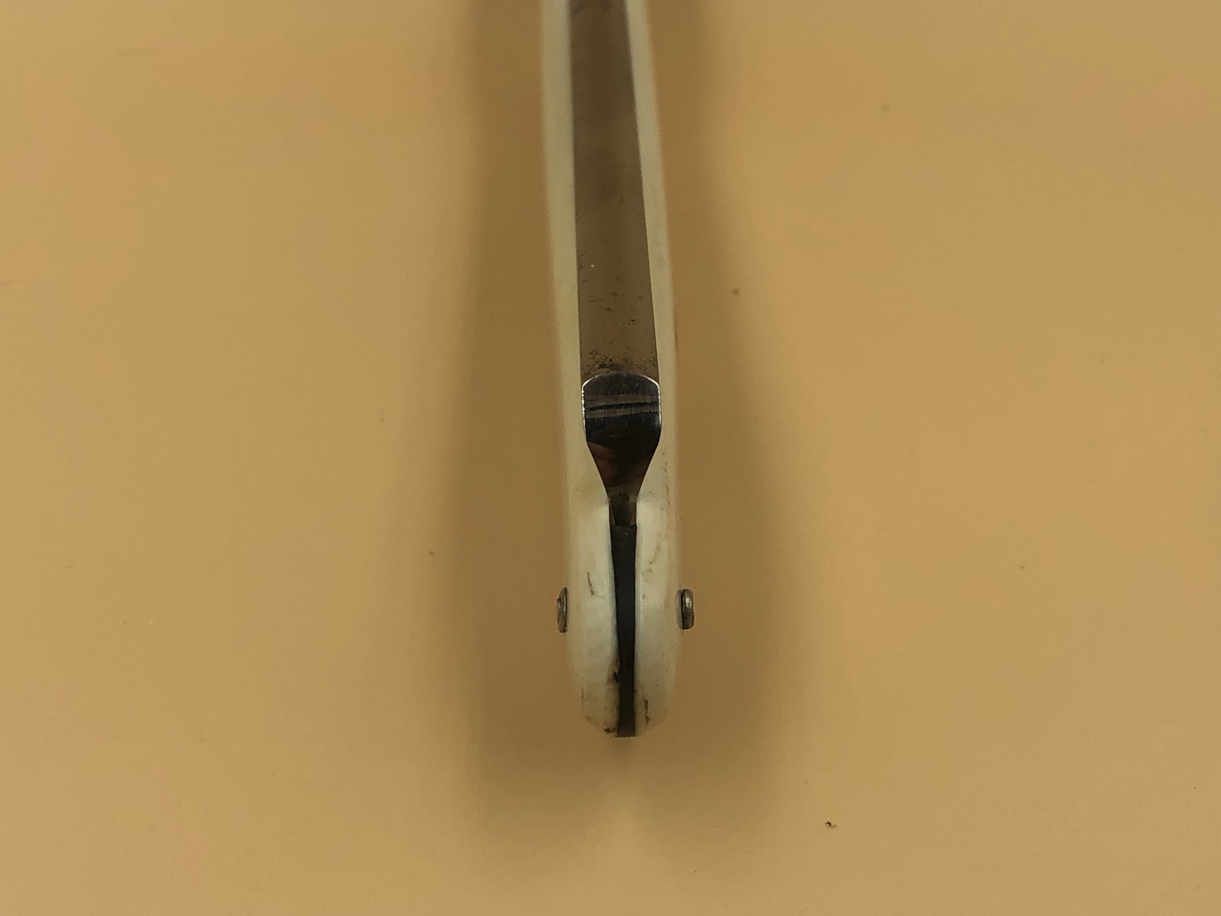 Первая четверть 19 века, прекрасное состояние для своих лет. По все видимости, осевой пин разбирался с сохранением родных шайб. Кем и когда- неизвестно. Форма - клин. Оправа Панцирь Черепахи, эксклюзивные и очень красивые шайбы. Комфортное бритье. Цена за такое чудо всего снята с продажи рублей с пересылом