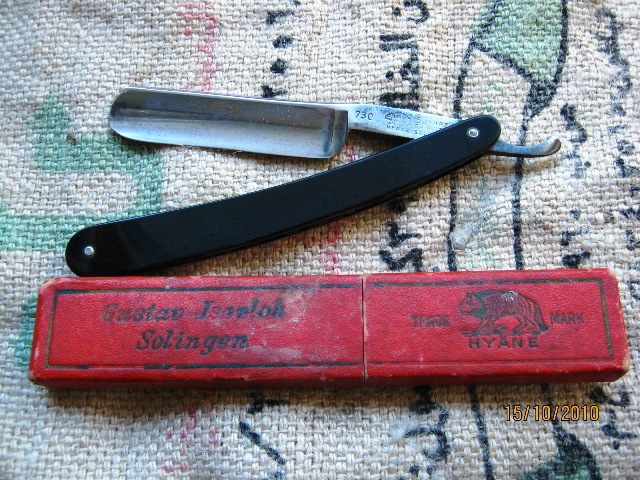 http://www.britva.ru/forum/viewtopic.php?f=21&t=1914 Gustav Iserloh, Solingen in 1922 and 1925. Brand names: '5 Jahre Garantie', 'Hÿane', 'Kronprinz', 'Scorpion', 'Wildschwein'.