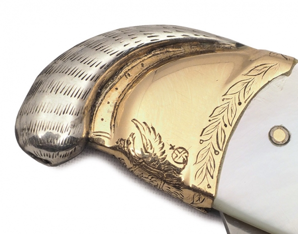 Тяга к роскоши вылезла владельцу боком. Я почитал в гугле о генерале Серове - он был одним из тех многих, чья голова полетела по делу Пеньковского. Знатный был провал советских спецслужб, они тогда Помимо другого, на Серова повесили "нарушения социалистической законности и использование служебного положения в личных целях". Видимо, благодарные сослуживцы-дарители, почуяв запах жареного и кинувшись спасать свою задницу, настучали на экс-шефа, что тот, пользуясь служебным положением, вымогал у них подобные дорогие подарки... Кстати, такая рукоять лично у меня вызывает ассоциации с одной из паркеровских шаветок: