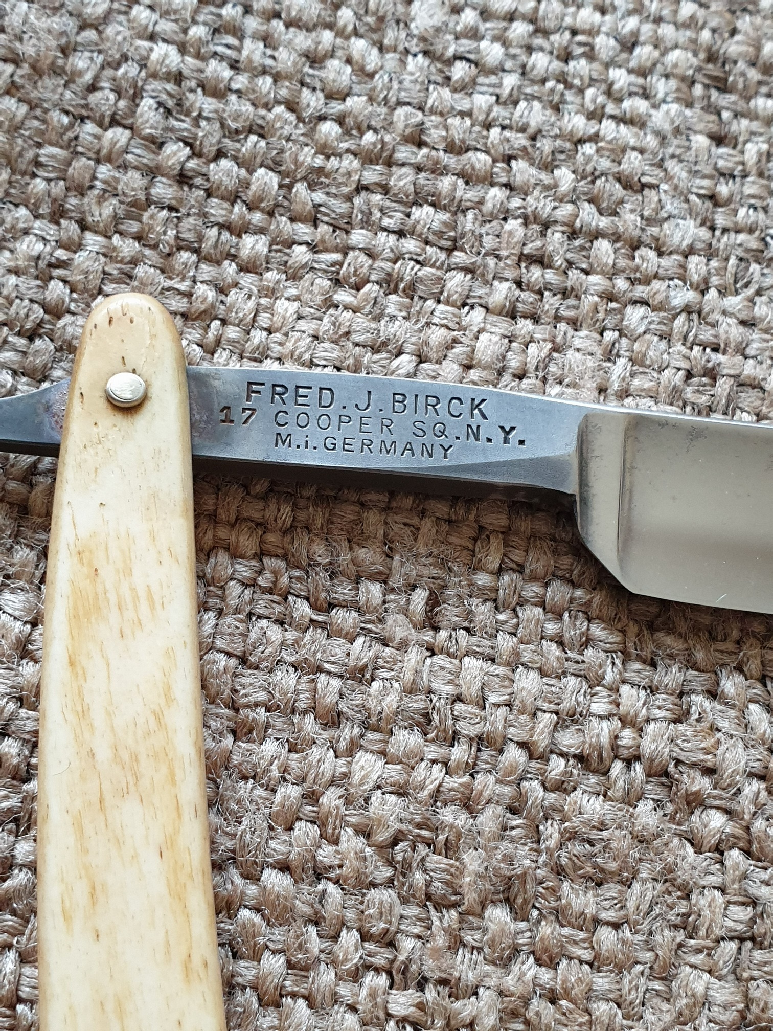 Ручка из рога, без выгрызов, не идеально ровная, но клинок паркуется в нее без перекосов и закусываний. Клинышек - олово. Историю бренда из книги Tweedale's Directory выложил в профильную ветку: viewtopic.php?f=28&t=2792&p=208735#p208735 Цена ПРОДАНО Spoiler Show