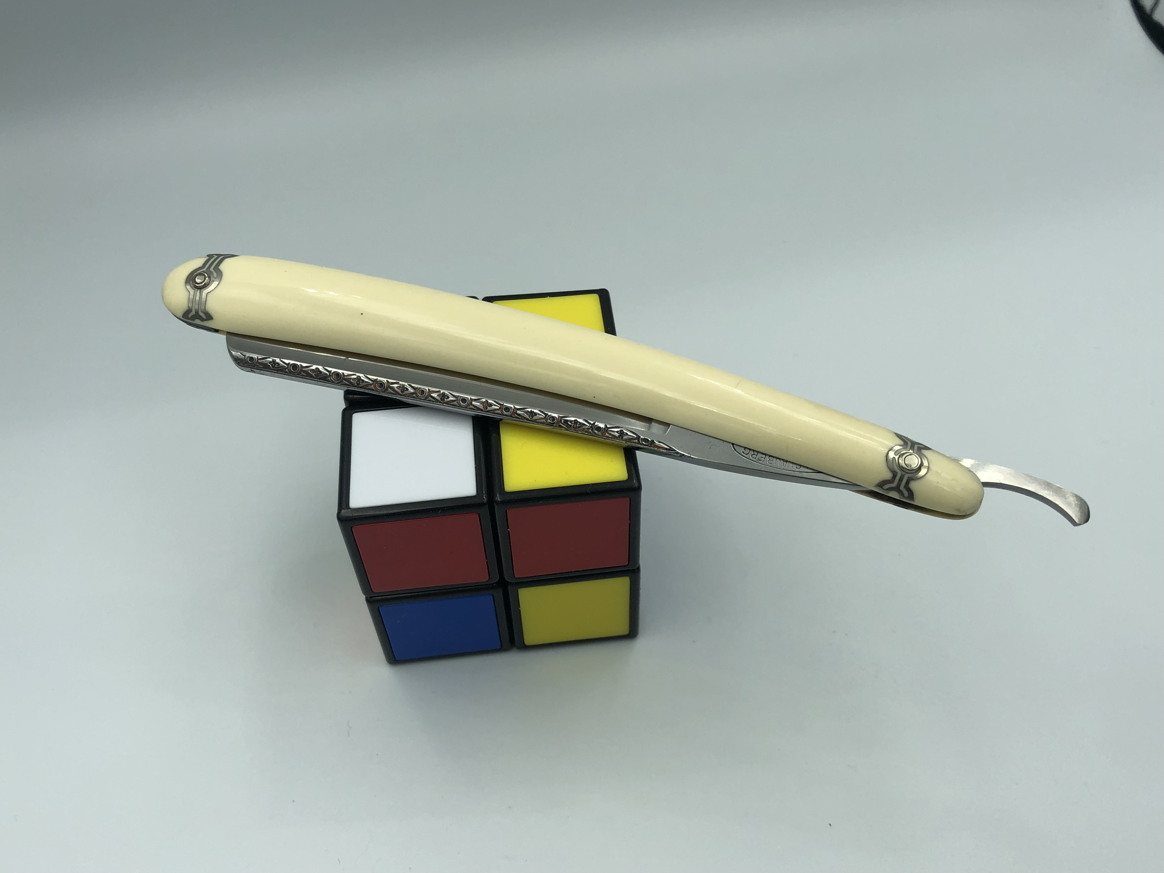 Размер честные 5\8, полная вогнутость. Производство 30-ые годы 20 столетия. Бритва заточена, протестирована. Очень мягкое и комфортное бритье. Подойдет как опытному бритвоману, так и новичкам, только познающим кайф от бритья опасными бритвами. Цена с доставкой по СНГ продана рублей