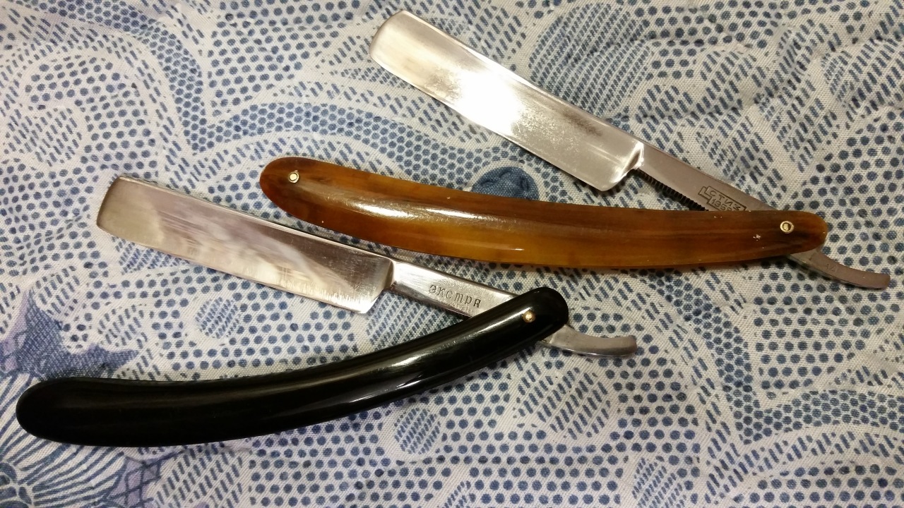 Бритва для ООчень жесткой щетины!Да, в ключе "подбор бритвы Экстра для жесткой щетины" интересно услышать мнение остальных. Мое мнение, что 48-49 г. Экстры Вача полуклины подходят тут более всего Я бы не сказал, что слабовато, по мне так вполне хорошо. Не радует нижняя граница ГОСТа, которая была в 56 ед. Попадались мне и такие советские бритвы, с которыми работаешь и понимаешь: вот они, эти 56 ед, тут. Очень слабые бритвы А вот та Экстра ЗТВ 56, которую вчера затачивал и пробовал. Вообще, у меня бритв Экстра очень много в коллекции, правда пока не все опробовал