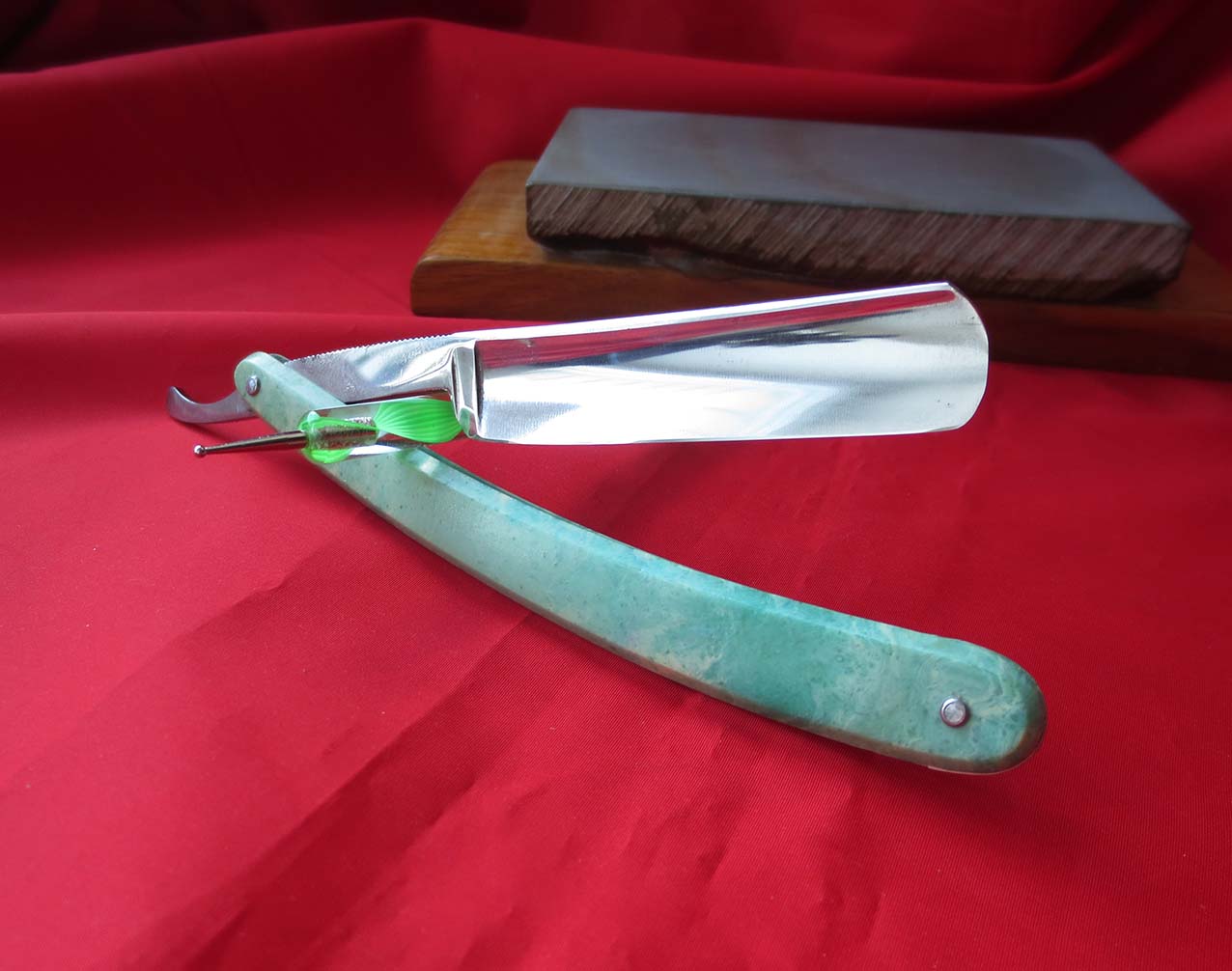 Английская опасная бритва Jamieson & Co Aberdin & Mileende Special Razor Enpire Guaranted. Сделана для шотландского заказчика, ориентировочно конец 19 века. Форма полотна - полная вогнутость, что довольно редко встречается на старых английских бритвах, ширина - 6/8 дюйма, легкая заводская улыбка. Изготовлена и установлена новая оправа из киринита, имитация под черепаховый панцирь, клинышек - олово, заклёпки - латунь. Инструмент заточен на японских водных камнях и приведён в полную боевую готовность, купил и сразу можно бриться. Подойдёт, как новичку, так и опытному профессионалу, как в коллекцию, так и в постоянное использование. Также всегда есть ремни для правки из натуральной кожи. При покупке с ремнем пересылка по РФ за мой счёт. Цена "шотландки" - 12500 рублей.