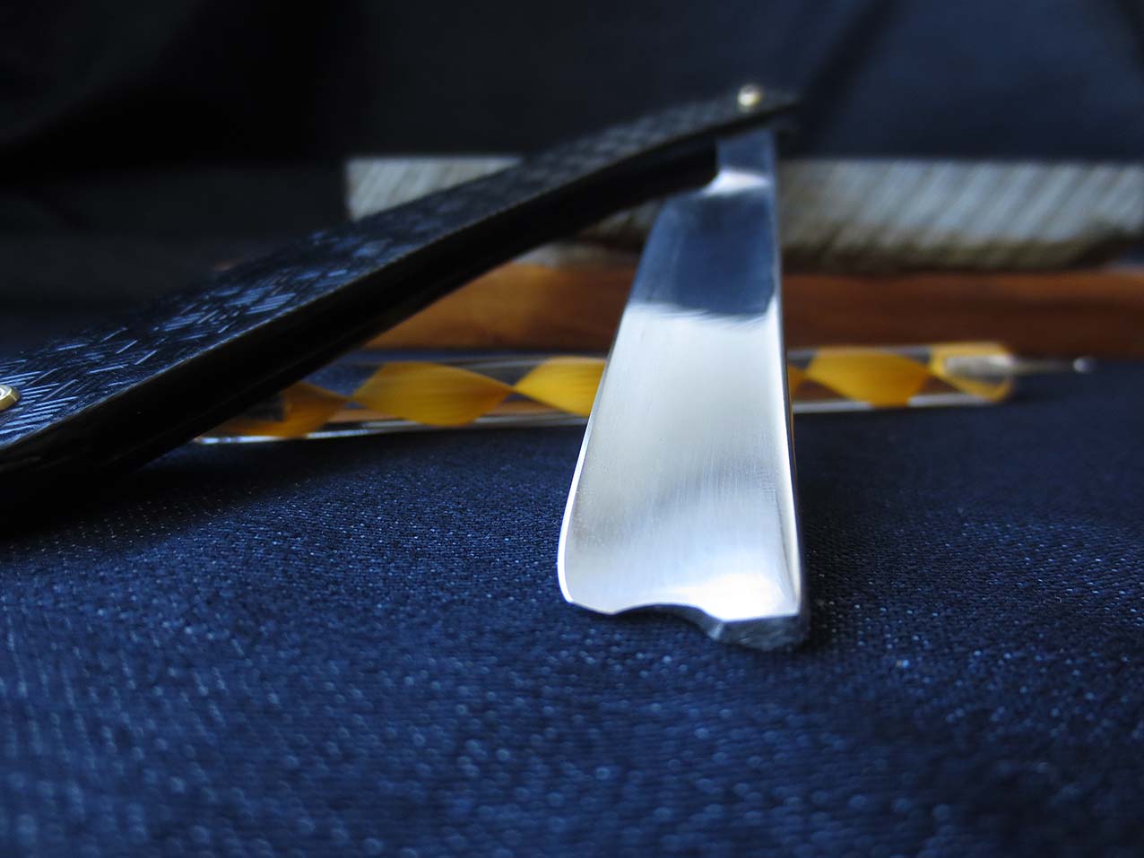 (Дамьён Фавье из Мелёна, почётный диплом), конец 19 века. Кованая углеродистая сталь, ширина клинка - 21мм, изготовлена новая оправа из киринита (карбон под чёрный перламутр), заклёпки - латунь, клинышек - олово. Инструмент заточен, протестирован на себе - бреет исключительно. После работ и тестов бритва продезинфицирована, направлена и в работе не была. Очень солидный подарок себе или дорогому для вас человеку. Цена - 7800 рублей.