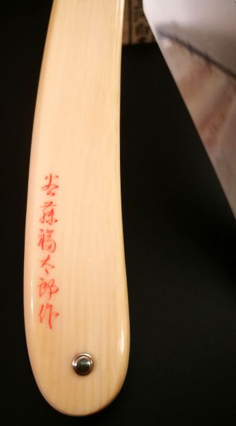 Сегодня речь пойдет о Стране Восходящего Солнца. Вот эту бритву, представленную на фото ниже, известный японский мастер-кузнец Ивасаки-сан сделал в честь ещё одного мастера - только не спорта, как Поддубный, а бритводела, как Жиллетт. Выкована она была примерно в 1974 году, когда его друг, коллега и сотрудник по бритвенному цеху Танифуджи Фукутаро (один из известных мастеров, который одним из первых стал делать японские бритвы не традиционными камисори, а в западном стиле; на этом сайте есть ссылка на его личность) отметил свой 80-летний юбилей, а заодно и выход на пенсию. По случаю этого события изготовлена была уникальная серия из 12-ти бритв с рукояткой из слоновой кости. Как утверждает автор зарубежного блога, откуда я скоммуниздил основной материал для данного поста, Ивасаки не пустил эту серию в продажу, а раздарил её важным и влиятельным знакомым. Помимо упомянутого одаренного юбиляра Фукутаро, владельцем одной из этих бритв стал сам (теперь уже бывший) монарх Японии - к слову сказать, на сегодняшний день единственный действующий император в мире! Поскольку в императорские закрома я из компьютера залезть не смог, представляю одну из бритв этой серии, которую возможно обозреть простым смертным. Так как в японских бритвах разбираюсь не особо, буду рад дополнениям к данному посту. Спасибо за консультативную помощь при подготовке материала форумному "знатоку японского качества" Андрею - мастеру wren.