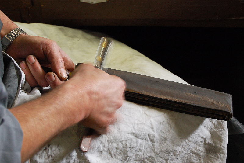 Был на фабрике???!!!! Я был на фабрике и могу сказать, что заточке уделяется особое внимание. Мсье Loft (работник Thiers-Issard) тоже про это говорил. При мне сделали бритву, которая лежит у меня. Я был доволен процессом её изготовления (см. ниже). Я боялся что то что мне сделали будет отличаться от качества заказанных, но, получив, понял что зря переживал. Единственное, на фабрике грязно, по сравнению с DOVO (я тоже там был). Последнее время качество DOVO вообще стало заметно хуже. Про заточку даже говорить не буду. Loup et Belier, SPARTACUS, FOX & ROOSTER и т.п. - это не названия моделей (грубо). Это серии по дистрибьюторам. Под такими названиями в разных странах можно увидеть одни и те же бритвы. А ещё мне очень понравилось оборудование и отношение людей к своему делу. Да и турки с хорватами там не работают (в отличие от DOVO, где "нерусских" я уже в 2002-м наблюдал.). Тоже плюс. Сайтом занимаемся, я думал это у меня IE приказал долго жить Фото сделаны Александром.