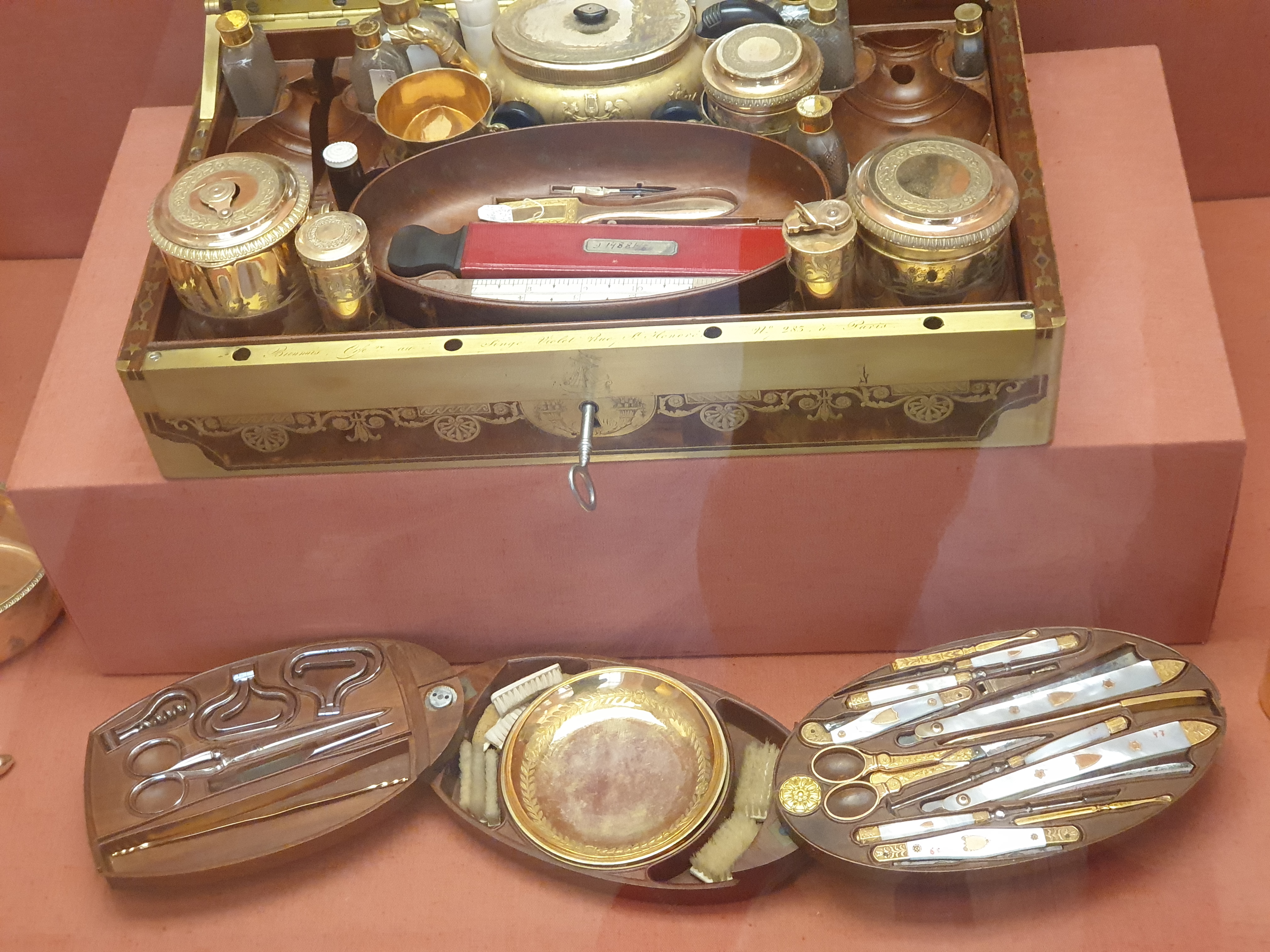 Забавно, что этот дорожный набор я сфотографировал будучи в Эрмитаже буквально неделю назад. Но он стоял в отдельной витрине вообще без этикетки с атрибуцией. Рядом экспонаты с подписями, а этот нет. Возможно когда доставали для съемки из витрины забыли картонку с описанием поставить на место.
