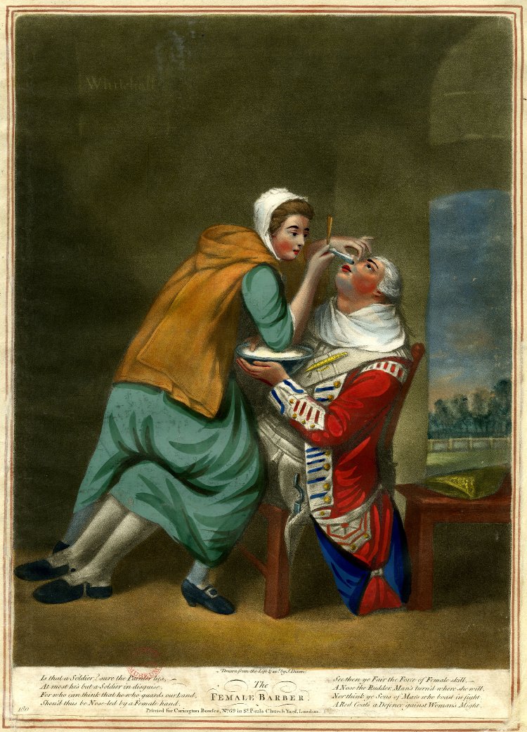 Молодая женщина бреет солдата, который сидит в форме в кресле, в то время как она оседлала его ноги в комнате с «Уайтхоллом» на стене. 31 августа 1770 г. Ремонт опасных бритв, звонить с 11-00 до 23-00, +79267729357, (viber, whats app, telegram, VK), спросить Олега.