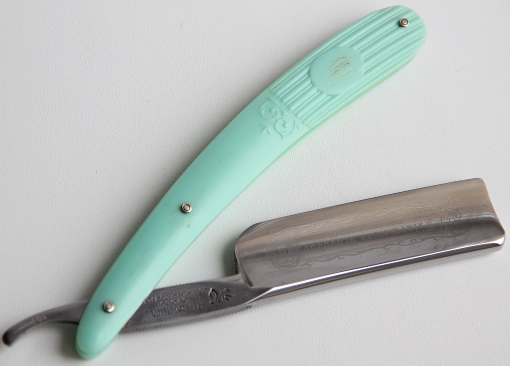 FILARMONICA 14 "NOVODUR" Jose Monserrat Pou Ширина полотна-24.5 мм или почти дюймовый! Толщина обушка-7 мм Полная вогнутость. Испанская углеродистая сталь. Середина 20-го века. Бритва в прекрасном состоянии для своих лет, с минимальными, еле заметными следами пользования. Не разбиралась и не ремонтировалась. Всё в оригинале и с оригинальным гриндом полотна. Очень аккуратное пользование.Клинок без царапин, ржавчины или других видимых дефектов. Идеальная геометрия полотна.Тяжёлая, мощная бритва, с красивой бирюзовой ручкой.Сталь, как и в предыдущем варианте, "звенящая" и качественная.Отличный вариант для тех, кто хочет иметь огромную Филармонику по формуле цена/качество. Бритва будет заточена и полностью подготовлена к бритью. Цена-19500 р с доставкой. ПРОДАН Spoiler Show