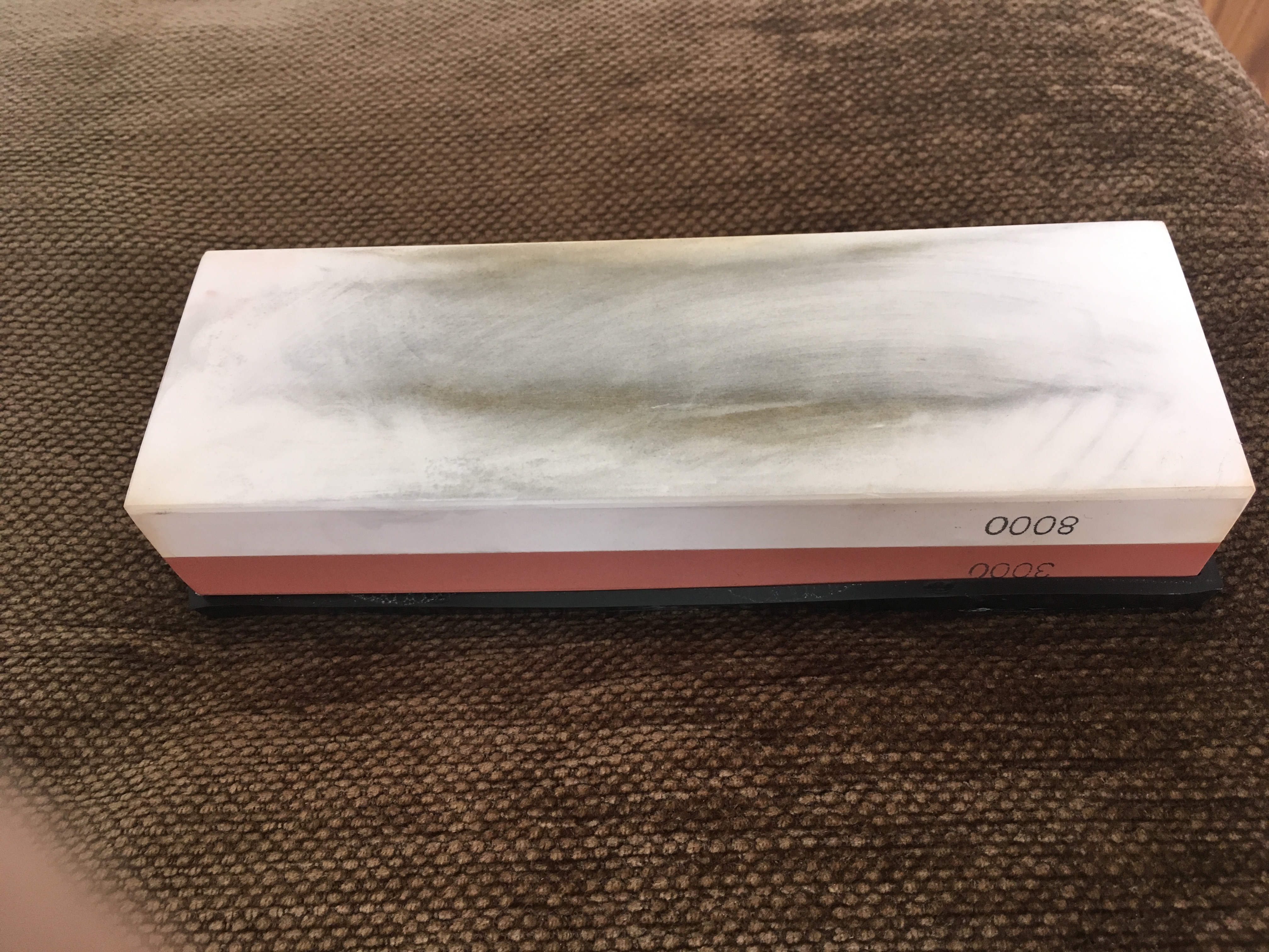 Тоже лежит такой зелёный мрамор. Склеенный, одна сторона рубин (китайсы его так называют), вторая изумруд или хрен его знает как, не помню названия. 3000/10000, вроде так его позиционируют. А описание заточки... Вы выше прям идеально ощущения описали. Нихрена оно не точит, а если и точит, то точно не бритву