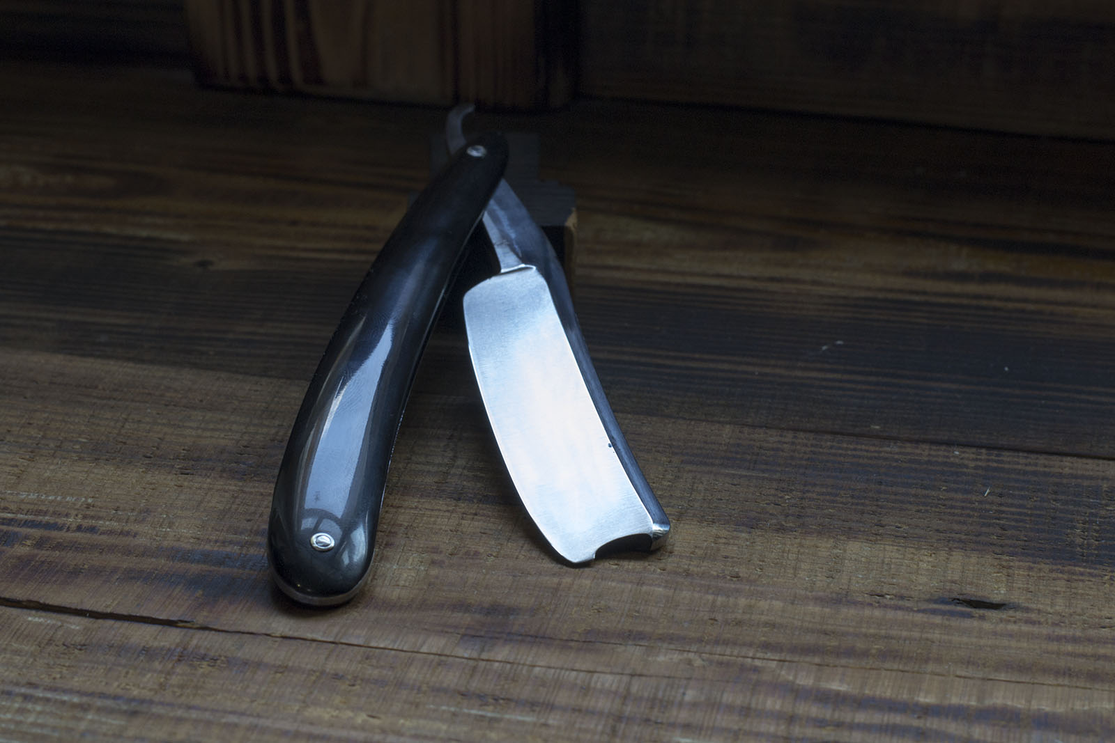 Старый клин, с прекрасной геометрией, изготовленный из качественной углеродистой стали во Франции. К сожалению период производства определить затруднительно, французы долгое время были приверженцами классических форм и подобные полотна выпускались до начала 20 века, но по косвенным признакам - форме родной рукояти и состоянию рога рискну предположить что это 70-80 гг 19 века. Бритва имеет крайне удобный эрль с подпальцевой выемкой, массивный широкий обух, ширина полотна 18.4 мм, отлично подходит для повседневного бритья и окантовки. Фаска режущей кромки тонкая и равномерная, свидетельство правильной геометрии полотна. Форма полотна уравномерно улыбчивая, что так же считаю несомненным плюсом. Бритва имеет новую роговую рукоять, изготовленную в соответствии с оригинальной, заточена и готова к бритью. Продано Volpiliere Fils. Show