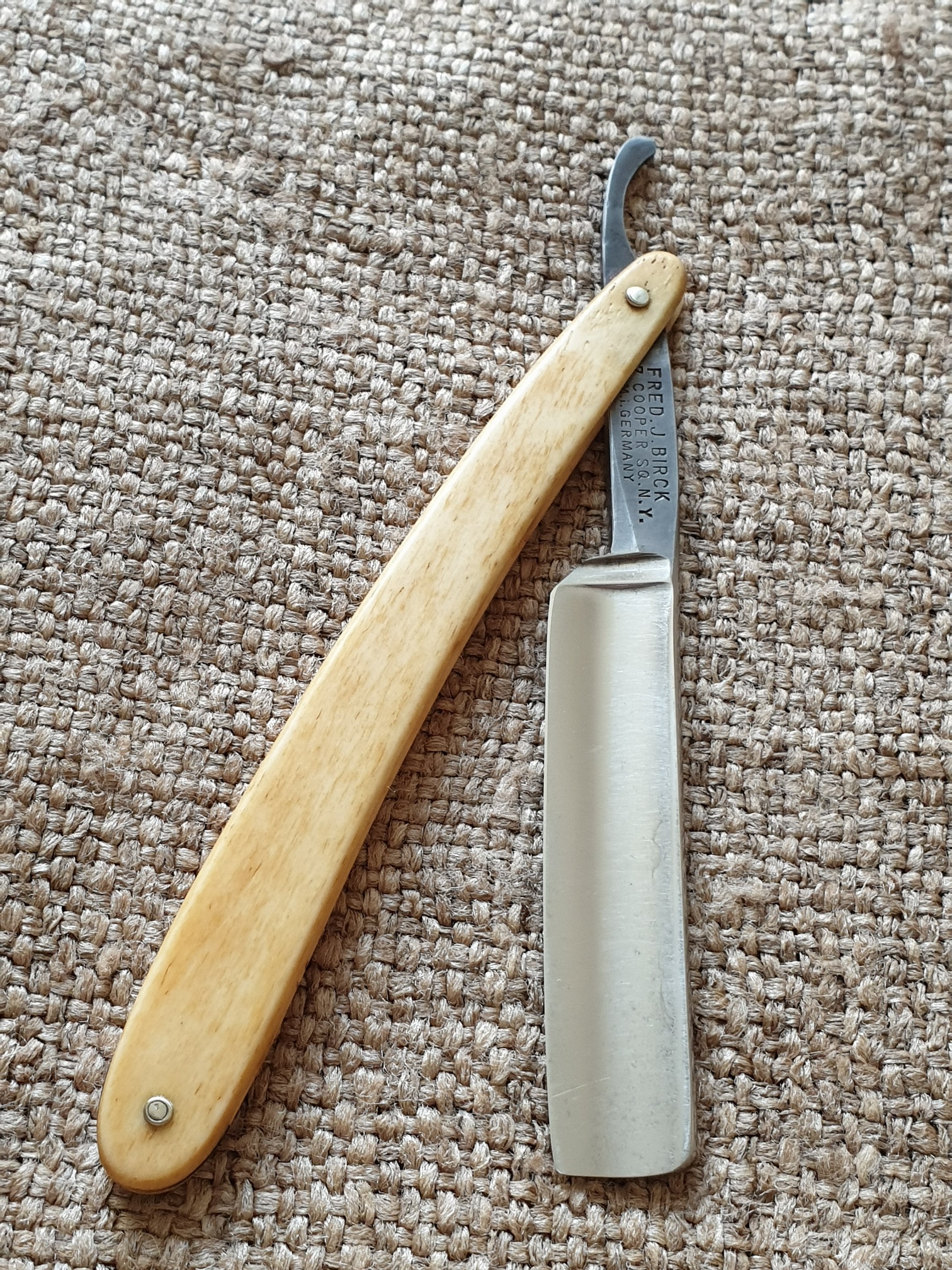 Ручка из рога, без выгрызов, не идеально ровная, но клинок паркуется в нее без перекосов и закусываний. Клинышек - олово. Историю бренда из книги Tweedale's Directory выложил в профильную ветку: viewtopic.php?f=28&t=2792&p=208735#p208735 Цена ПРОДАНО Spoiler Show