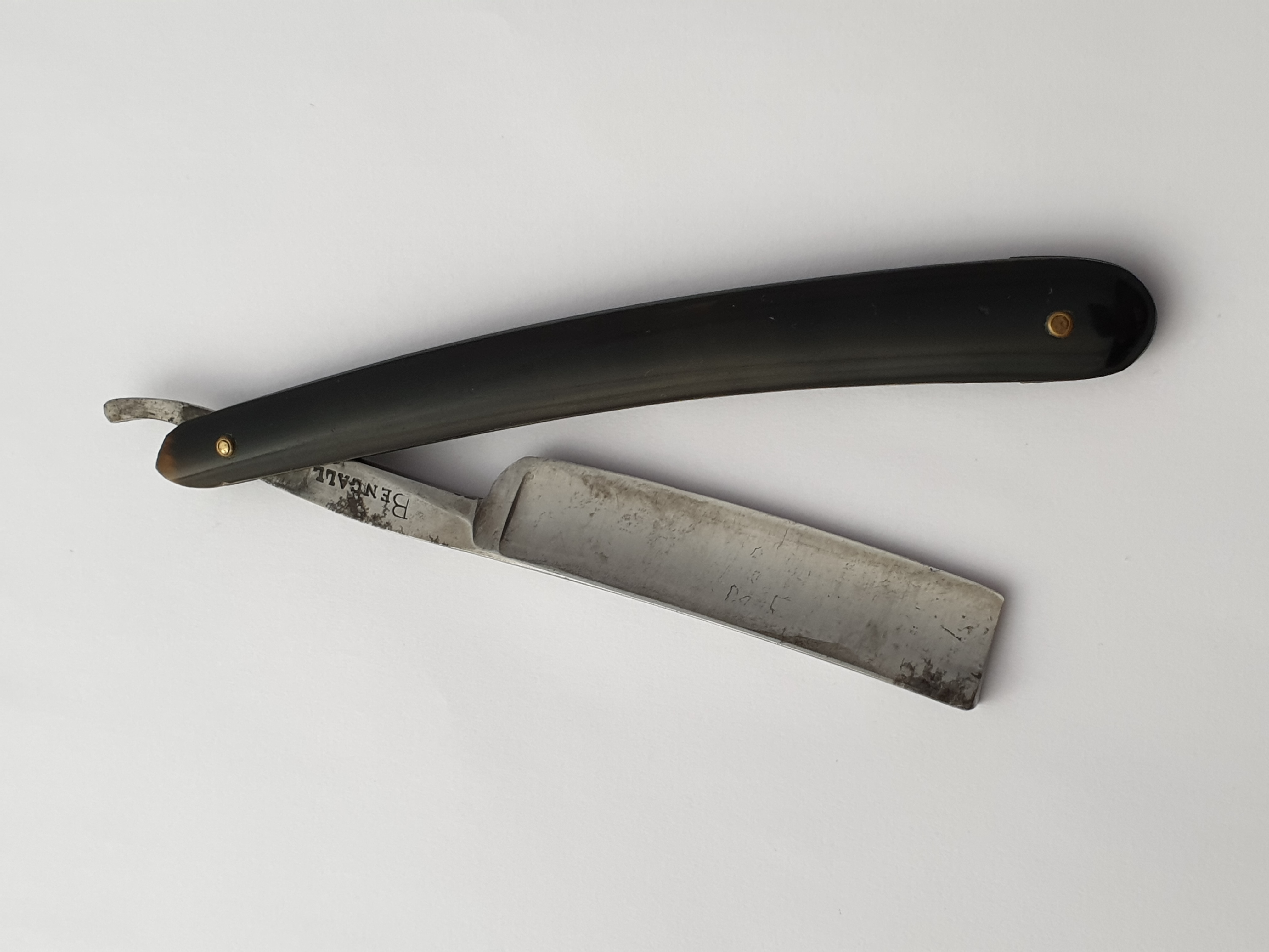 Ручка из рога, без выгрызов, не идеально ровная, но клинок паркуется в нее без перекосов и закусываний. Клинышек - олово. Историю бренда из книги Tweedale's Directory выложил в профильную ветку: viewtopic.php?f=28&t=2792&p=208735#p208735 Цена ПРОДАНО Spoiler Show
