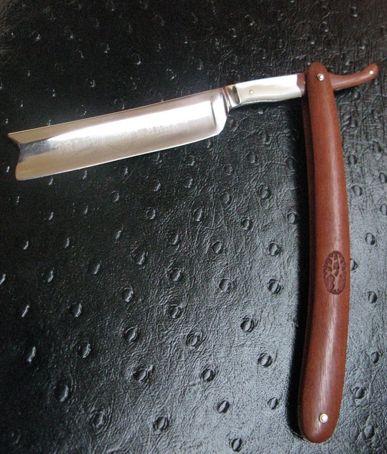 Re: Бритва до... и после...Попал в руки вот этот Бекер. Обушок кто-то в усмерть убил на наждаке, ручку и натуральный перламутр на эрле ушатало время. Справедливое мнение спецов было "гамно", но я решил пожалеть. Вот, что получилось. Ручка и часть отделки на эрле из Масарандуба (бразильское железное дерево), спасибо Архимедесу за материал, часть перламутра удалось спасти.