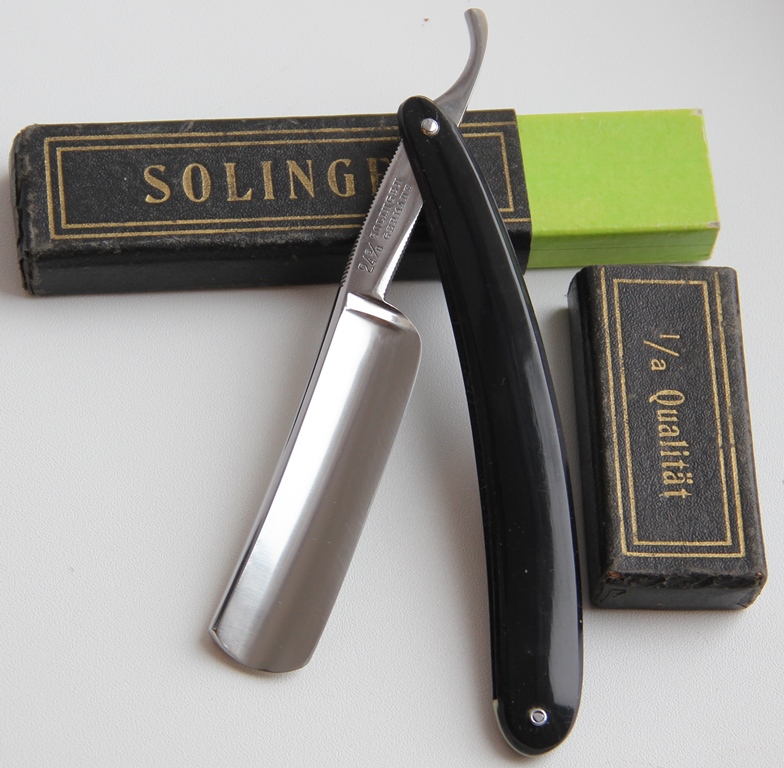 Ширина полотна-19 мм Толщина обушка-5.5 мм Полная вогнутость. Углеродистая сталь. Примерно 60-70-е годы производства. Также, один из известнейших немецких брендов, историю которой можно почитать на многих ресурсах. Бритва находится в прекрасном состоянии, с едва уловимыми следами краткосрочного пользовании в прошлом.Со своей стороны разобрал бритву,немного освежил металл от древней патины, на тонких абразивах и обратно собрал, сохранив родные пины.Бритва очень приятная во всех смыслах: будет удобна как в бритье, так и внешне красива и сбалансирована. Сталь чистая от любого рода дефектов, клинок имеет идеальную геометрию и равномерную кромку.Будет идеальным вариантом как для новичка, который желает иметь практичную и удобную вещь, от известного производителя прошлого, но так и для любого опытного любителя Бритвы.Не пропустите красивую и относительно недорогую бритву. Заточена и готова к бритью. Цена-5500 р с доставкой. ПРОДАН Spoiler Show