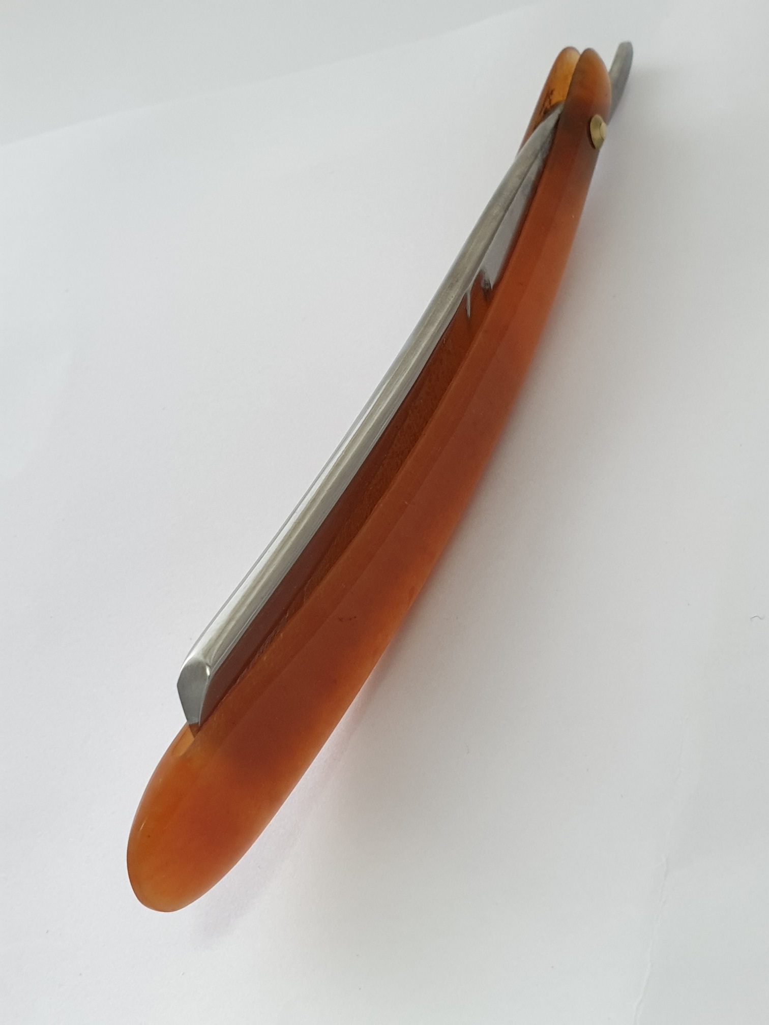 Продаётся от S&T56. Бритва под восстановление, продается как есть. Bengall cast steel, ширина клинка 17мм, обух 4мм, длина рабочей кромки 70мм. Ручка вероятно не родная, целлулоид, ровная, без дефектов.