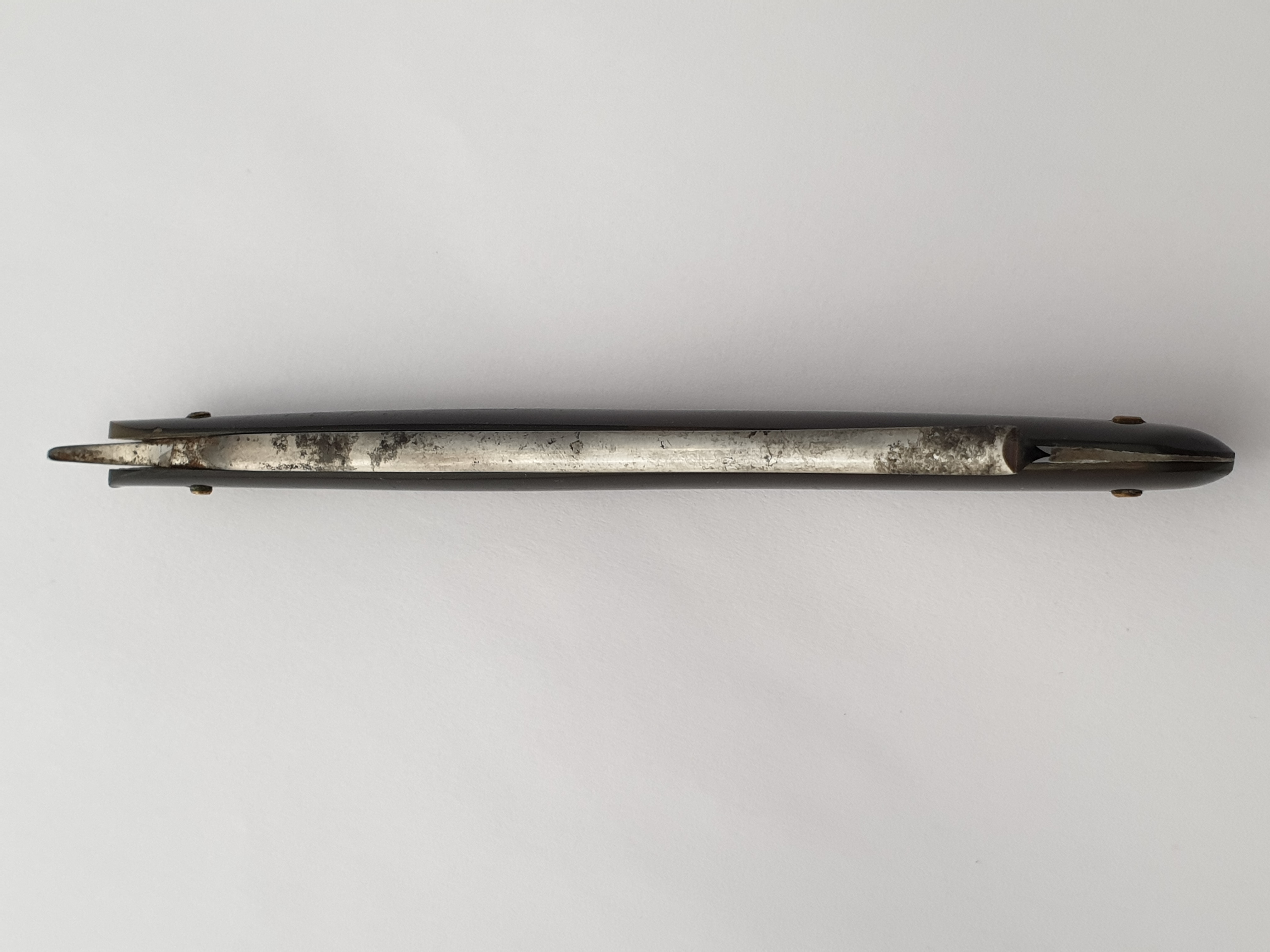 Ручка из рога, без выгрызов, не идеально ровная, но клинок паркуется в нее без перекосов и закусываний. Клинышек - олово. Историю бренда из книги Tweedale's Directory выложил в профильную ветку: viewtopic.php?f=28&t=2792&p=208735#p208735 Цена ПРОДАНО Spoiler Show