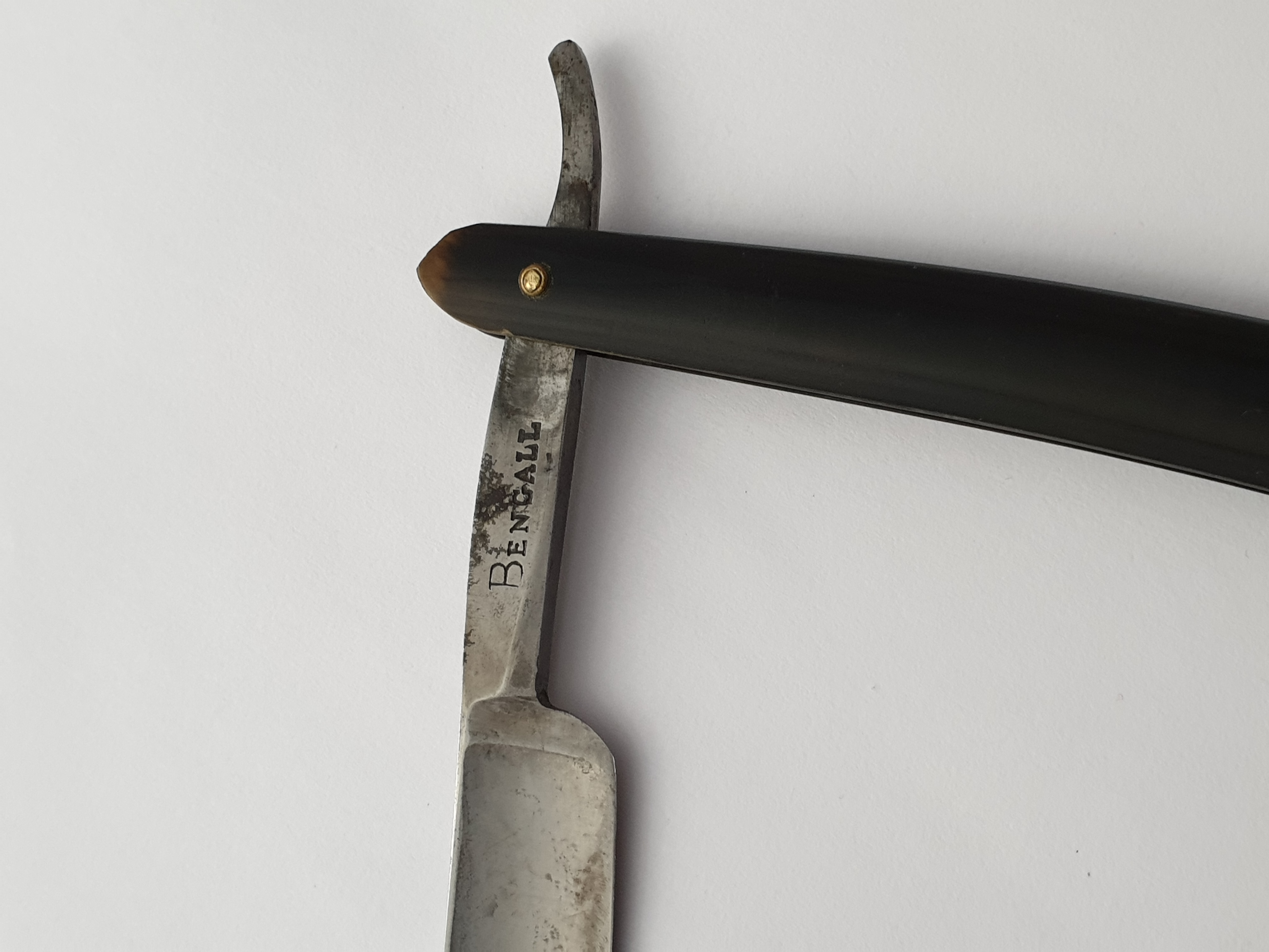 Продаётся от S&T61. Бритва под восстановление, продается как есть: популярная модель Bengall от T.R.Cadman&Sons Sheffield England. Ширина клинка 16,5мм, обух 5мм. Ручка из рога, без выгрызов и прочих повреждений, клинышек из олова, родные пины. Бритва не разбиралась, не шкурилась и пр. Клинок паркуется в ручку без перекосов и закусываний, сидит на осевом пине плотно.