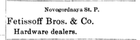 非及所夫兄弟洋行;非及所夫五金行 Fetissoff Bros. & Company