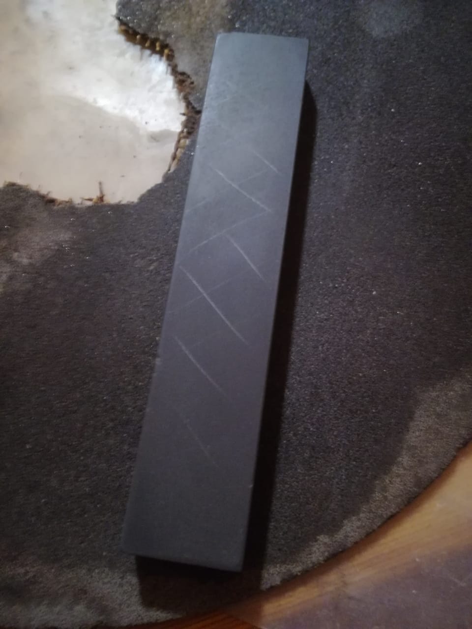 Помогите определить каменьприобрел сегодня на блошинном рынке брусочек.размер православный 24 см на 4 см на 2 см.следов фрезы на торцах нету.твердый до опупения.4 часа притираю на большом круге от бензореза,стачивается только круг!))с бруска сточились буквально микроны.суспензию не дает.цвет однородный как графит из карандаша.начал появляться глянец.чем может оказаться этот камень?синтетик может быть таким твердым?