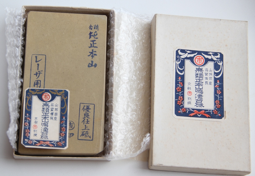 Narutaki Maruichi KIITA Lv-4+ Размеры камня:140х80х18(17) мм Вес-445 гр Кэндзи соответствуют высококачественному, отборному образцу. 本鳴瀧 = Hon Narutaki = Original Narutaki-Нарутаки (丸市 ) 印特選-Maruichi shirushi tokusen = Maruichi special selection -Специально отборная Мауручи Хонияма. レザー用= Rezā-yō = (Use) For razor-Для бритв. 純正本山 = Ukea junsei honyama = Genuine/guaranteed real Honyama (whetstone mountains of Kyoto, or even Nakayama) 優良仕上砥 (石 ) = Yūryō shiageto(ishi) = Excellent/superior finishing (whet)stone-высококачественный финишный камень. Камень из старых запасов.. По бренду можно почитать информацию тут https://historyrazors.wordpress.com/201 ... al-stones/ Можно и у Такеши Аоки https://www.aframestokyo.com/narutaki-m ... 14145.html Максим из Дании тоже продает нечто подобное, но немного лукавит(наверное) с использованием известных имен. https://www.japanesenaturalstones.com/for-razors/ Рабочая поверхность притерта и готова к использованию. Качество песка исключительно подходит для тонкой доводки бритв.Не имеет трещин, паразитных включений или других дефектов, способных каким то образом повредить зеркало кромки бритвы. Имеет чисто бритвенный размер, что позволяет работать не только на столе, но и держа на весу, в руке. Цена-15500 р с доставкой ПРОДАН Spoiler Show