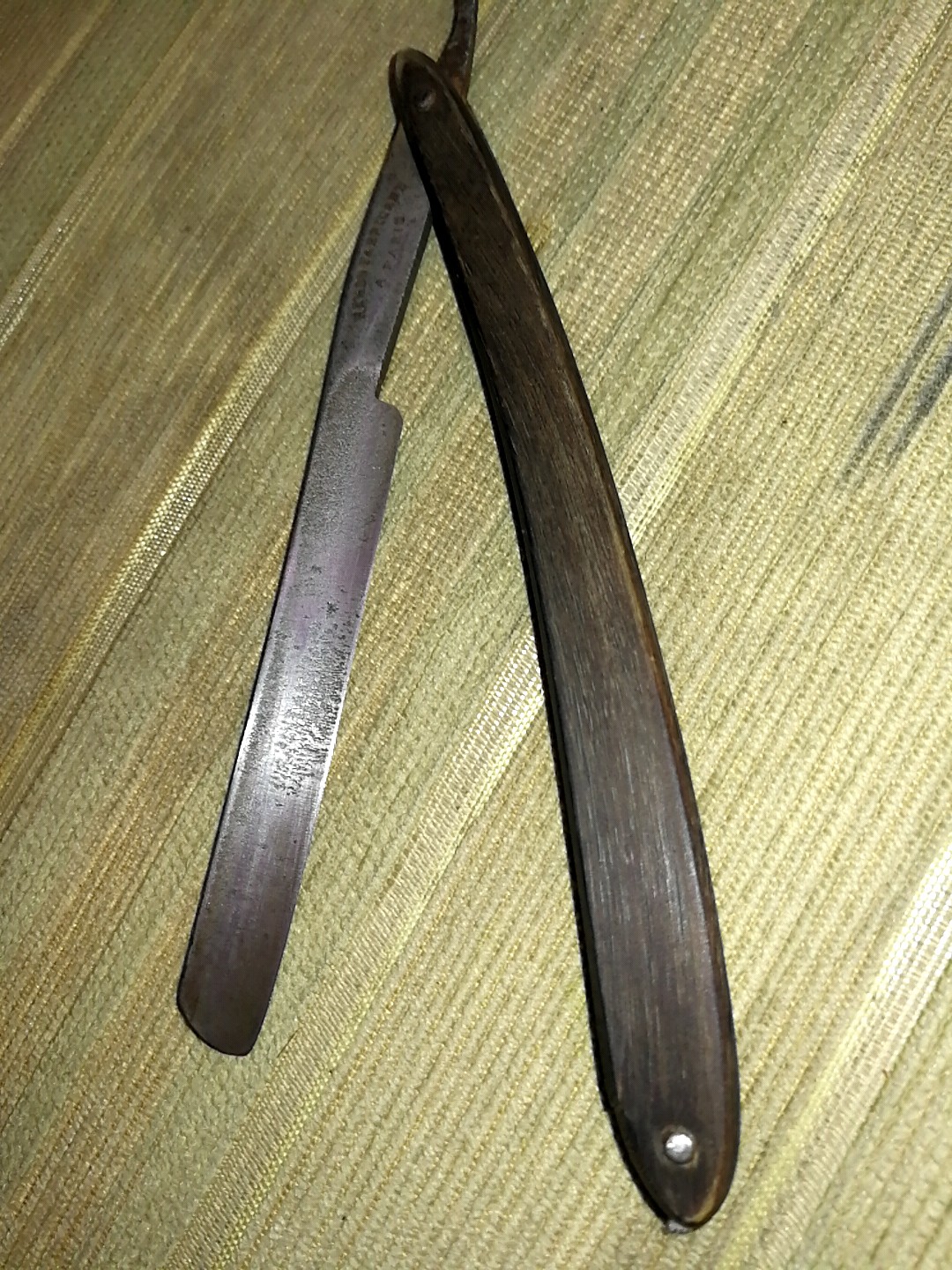 бриться опасной бритвой (не для крутизны. ибо этот период у меня давно прошел). Медитирую на опасную битву(подружку) чтобы бриться(а пока нет взрослой бритвы тренируюсь китайской шаветкой). Попалась такая на барахолке типа старая.(имею склонность к ретро вещам)