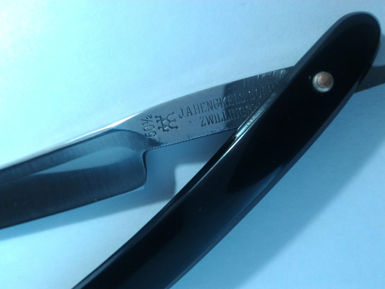 Почистил клинок. Оправу сделал из гибрида (сбилизировнный орех и смола) Zwilling J.A. Henckels AG, Solingen (*#)Купил за 300 р. то, что было на рис. 1, то, что сделал на рис. 2-5, ржу убрал преобразователем ржавчины, потом полировал не сильно войлоком вручную с гои. Волос разрезает поперек, в ноготь не впивается (скользит), задиров никаких не чувствуется, бреет вроде ниче так. Пины да, не очень, когда алюминиевую проволоку купил, бритва уже была с медными.