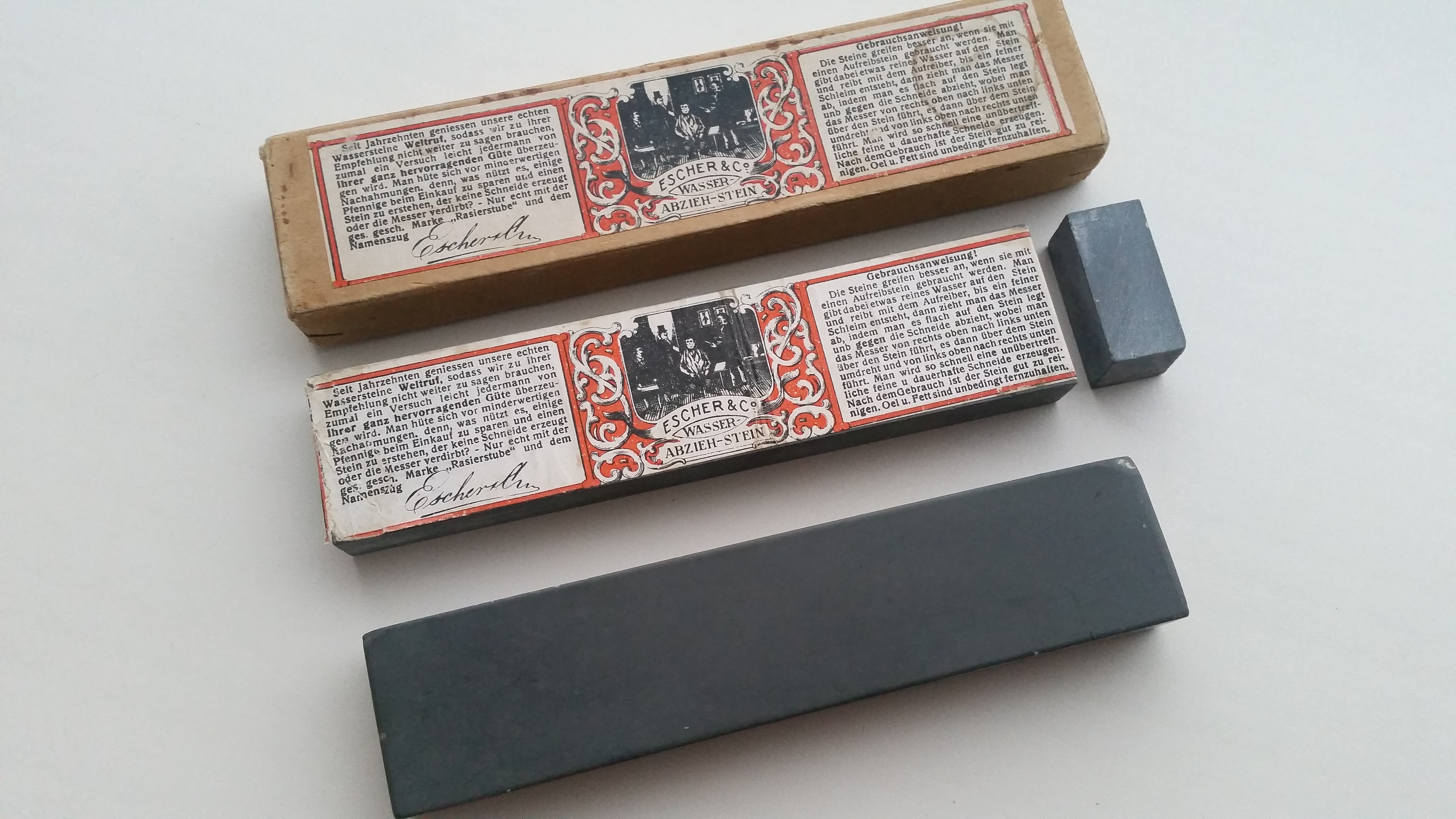 J.G. Escher companyLyapaDara, у меня два подобных камня. Тюрингиец в гробике 2.5*12.5 и желто-зелёный эшер с этикеткой в два раза шире с такой же длиной. «Вау» конечно нет, и нет по одной причине- итоговый результат одинаков, но разница между камнями есть. Разница в скорости работы и ощущении работы. На Эшере в разы быстрее и приятнее. Ты интуитивно понимаешь, что все, можно останавливаться. Тут, конечно, и ширина камня играет роль. Но если стоит выбор одного при одинаковых размерах- выбрал бы эшер. Тут второй момент включается, именно ты с ним не согласишься, но... этикетка даёт хоть какую-то гарантию новичку. Есть огромная вероятность, что при отсутствии результата виноваты руки, виновата техника и методика заточки, а не камень. А стоит ли переплачивать... Если есть деньги, то почему бы не заплатить за эту этикетку и хоть какую-то гарантию качества. Да и этикетки очень красиво в рамочке смотрятся))