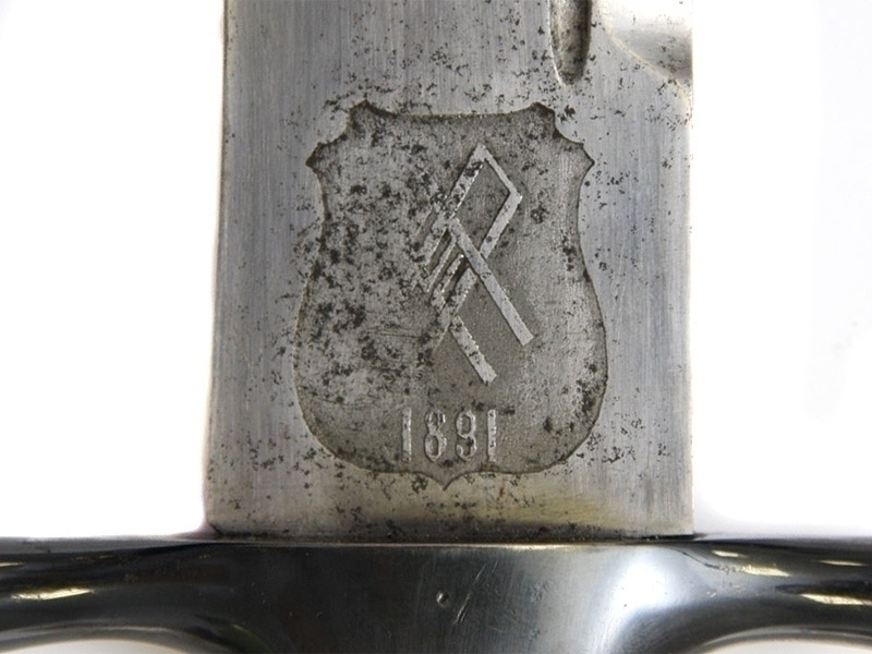 - Медвежий массивный охотничий нож в деревянных ножнах, обтянутых черной кожей. Клинок с одним долом, маркирован клеймом "Шафъ и Сыновья, С. Петербург", с лицевой стороны травлением нанесен фамильный вензель владельца и 1891 год. Рукоять из черного дерева с рифленой поверхностью. Прибор рукояти и ножен стальной, покрыт воронением. Воронененое покрытие прибора, рукояти и ножен восстановлено. Конец XIX века.