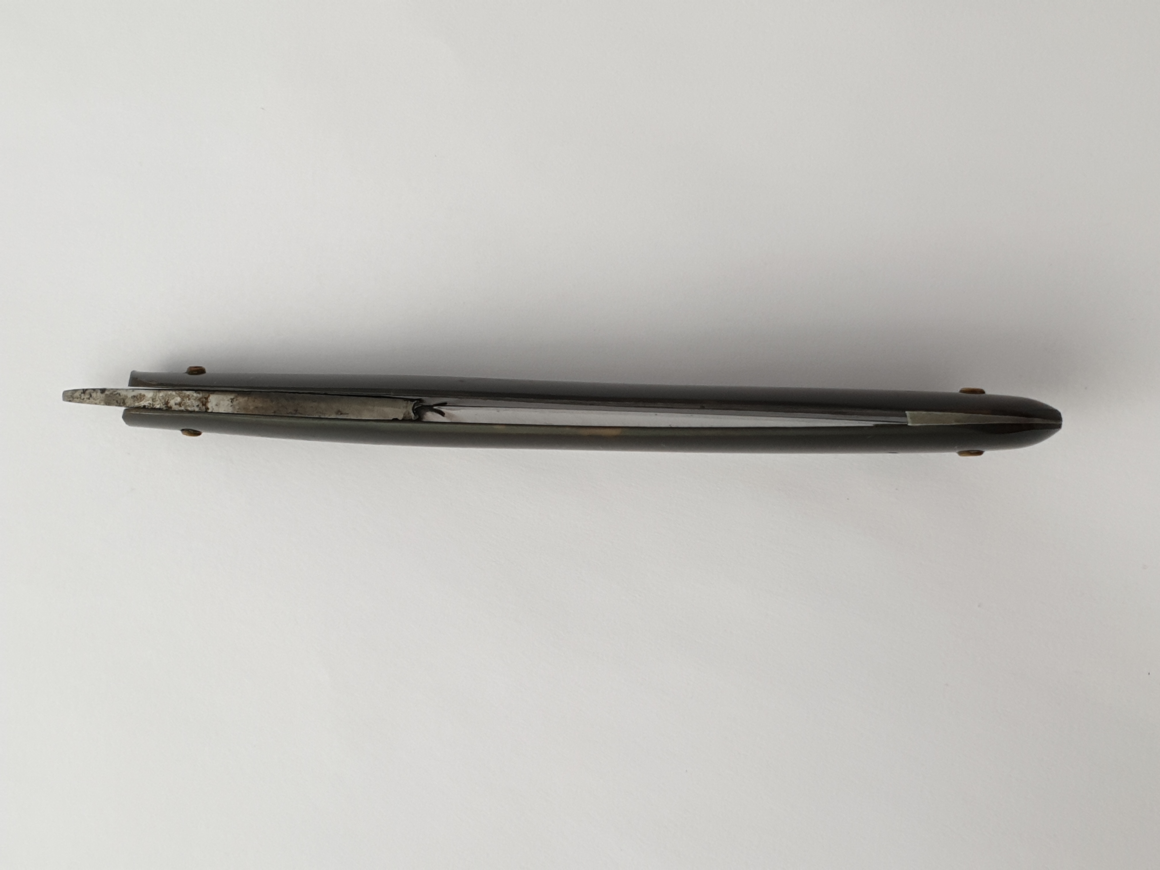 Ручка из рога, без выгрызов, не идеально ровная, но клинок паркуется в нее без перекосов и закусываний. Клинышек - олово. Историю бренда из книги Tweedale's Directory выложил в профильную ветку: viewtopic.php?f=28&t=2792&p=208735#p208735 Цена ПРОДАНО Spoiler Show