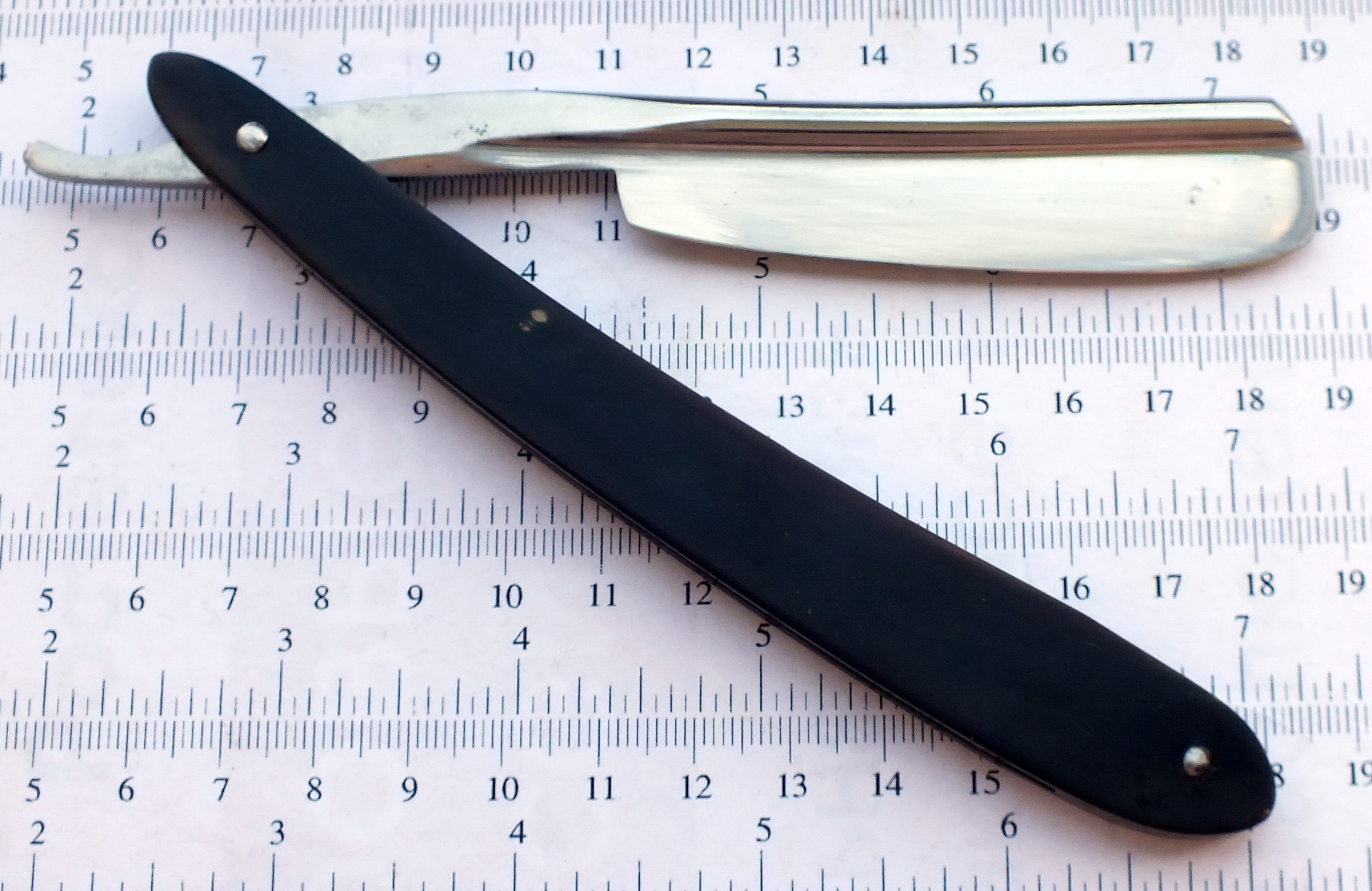 7/16 почти клин. Углеродистая сталь, эбонит. Бритва заточена и готова к бритью. Продана на другом ресурсе Spoiler Show