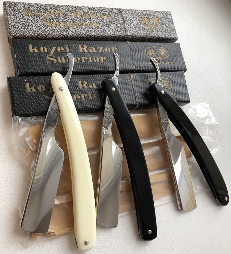 Бритвы находятся в совершенно нетронутом и исключительном коллекционном состоянии.Как будто только вчера с завода.Только оттер от остатков масла.Сталь и кромка чистые, без следов ржавчины , коррозии и окисления.Идеальная геометрия клинков:кромочки равномерны по всей длине и практически незаметны.Бритвы тяжелые. Как по мне, так идеальный вариант не только по красоте и своему коллекционному состоянию, так и прекрасный инструмент по прямому назначению.Эффектный эрль, с элементами ковки, удобная форма лезвия, вкупе со своей массивностью придают только положительные эмоции от пользования такой вещью.Осталось только три бритвы, которые не успели разобрать до того, как я выложил их на продажу. По желанию будут заточены и подготовлены к бритью.