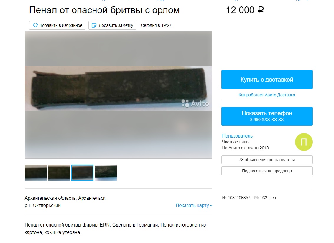 Аукционы: плагиат, развод и "великолепные" описанияС таким же успехом можно продавать собственные фекалии. Ремонт опасных бритв, звонить с 11-00 до 23-00, +79267729357, (whats app, telegram, VK), спросить Олега.