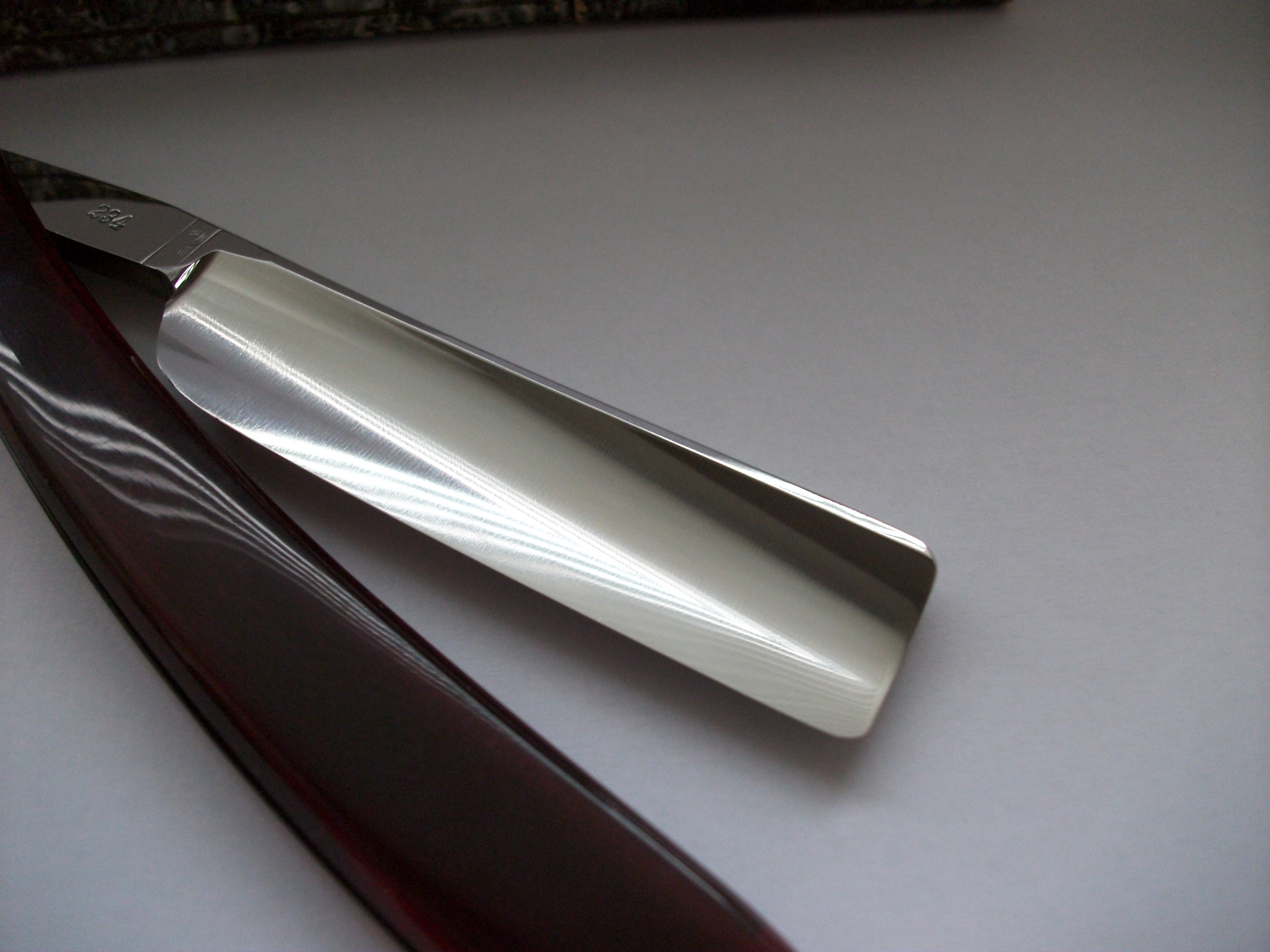 C.V.Heljestrand Абсолютное новье, лично снял пломбу при открытии коробочки. Узкая бритва из углеродистой стали, ширина полотна 11мм, ручка пластик. По желанию может быть заточена - включено в стоимость. Продано. Spoiler Show