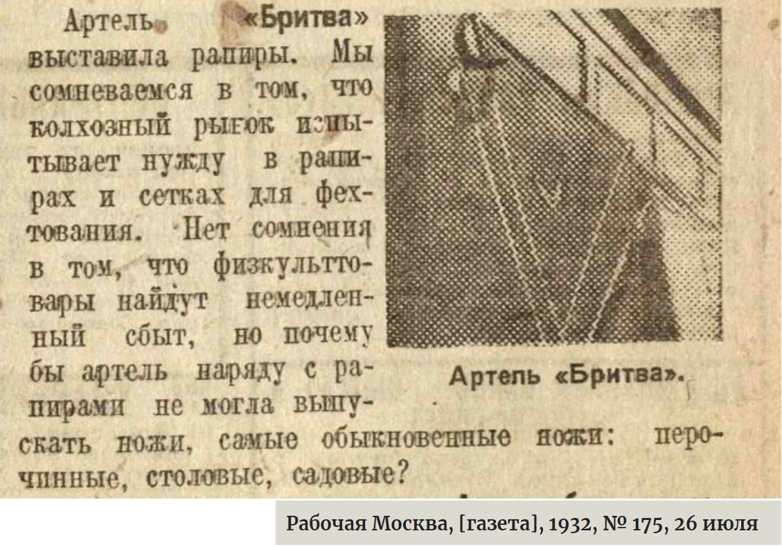 - В 1932 году артель Бритва начала делать рапиры.