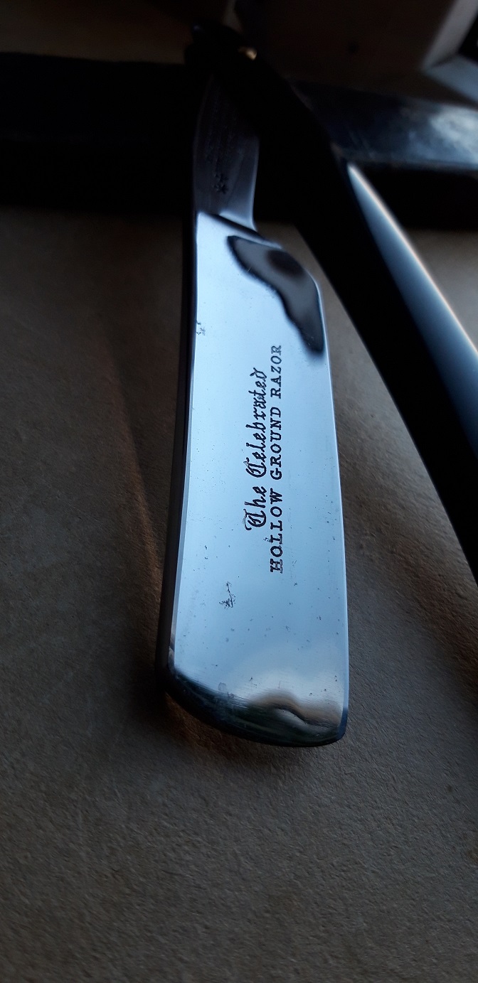 Клин. 20 мм. Обух более 6мм. Увесистый экз. Нос - танкерный. Ручка рог родная, мощная, в идеале. Клинышек олово. Бритва в использовании не была. Единственное, немного времени осталось возле обуха. Абсолютно ничего страшного. Бритва прошла через хорошие руки Дядюшки Фантомаса. Заточка тоже его. За что ему огромная благодарность! Продана.