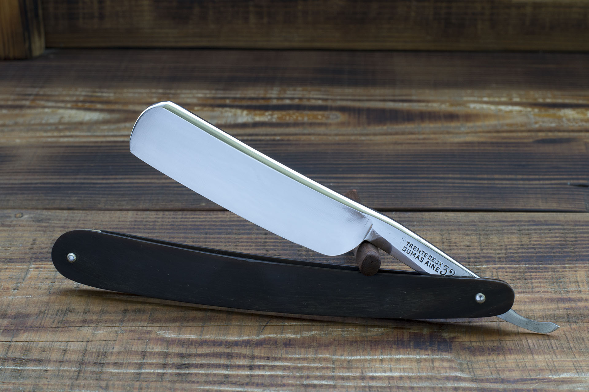 Старый клин торговой марки 32, изготовленный в городе Тьер в середине 19 века. 32 (trente deux) является старейшей торговой маркой в городе Тьер, функционирующей по сей день. К сожалению, они больше не производят опасные бритвы, после перехода в собственность Антуана Русселона в 1882 году бритвы перестали являться значимой частью продукции фирмы, уступив место карманным ножам и столовым прибором. Данный клин по моему мнению изготовлен до 1882 года и скорее всего даже до 1860, тогда марка была еще собственностью семьи Dumas, давая миру отличные качественные бритвы. Бритва имеет родную роговую рукоять, белые шайбы конусом, возможно из нейзильбера. Вогнутость клин или уместнее назвать квартер (1/4). Ширина полотна 22 мм (7/8) Заточена и готова к бритью Цена 16000 рублей 32 Show